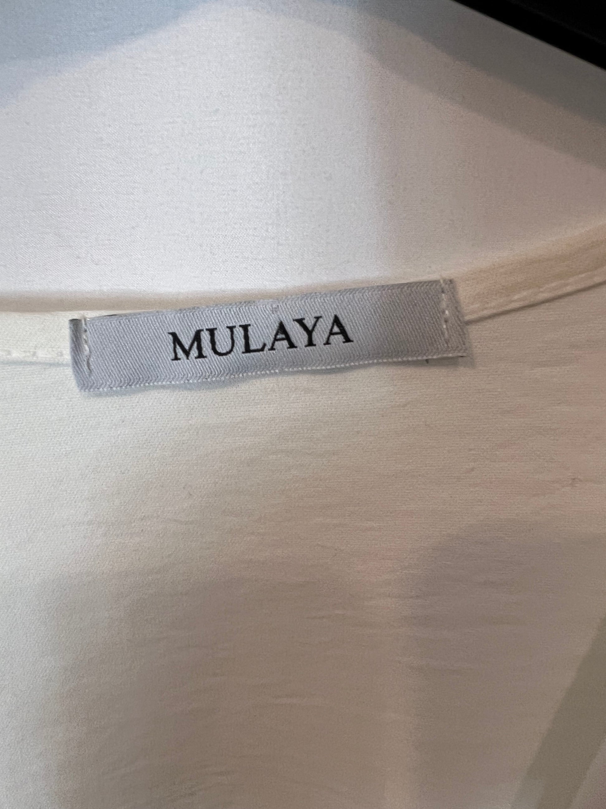blusa blanca cintura elástico con lazada . Largo 64cm