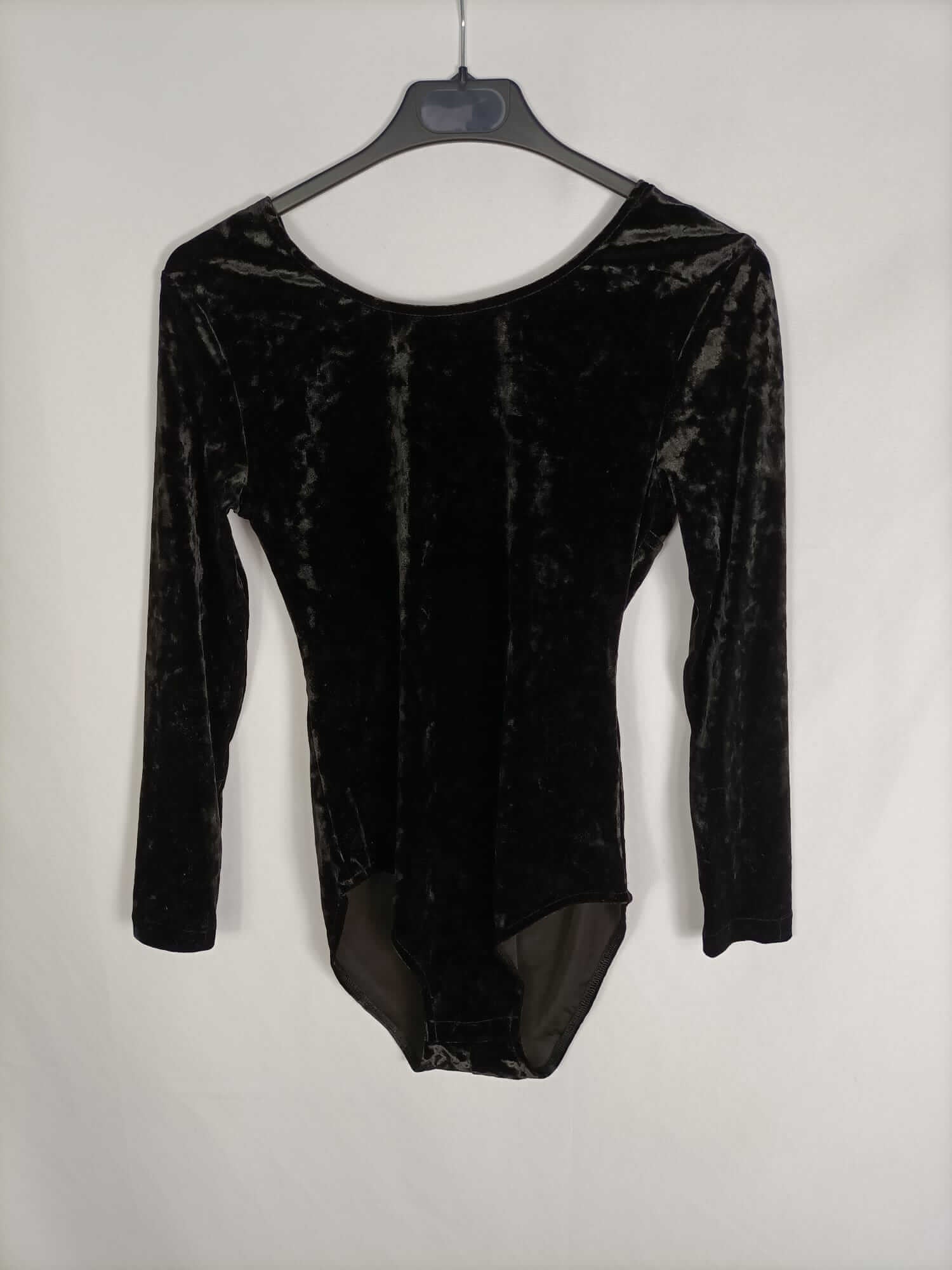 Mus&bombon. S. Body negro de terciopelo elástico con la espalda baja. Largo 61 cm