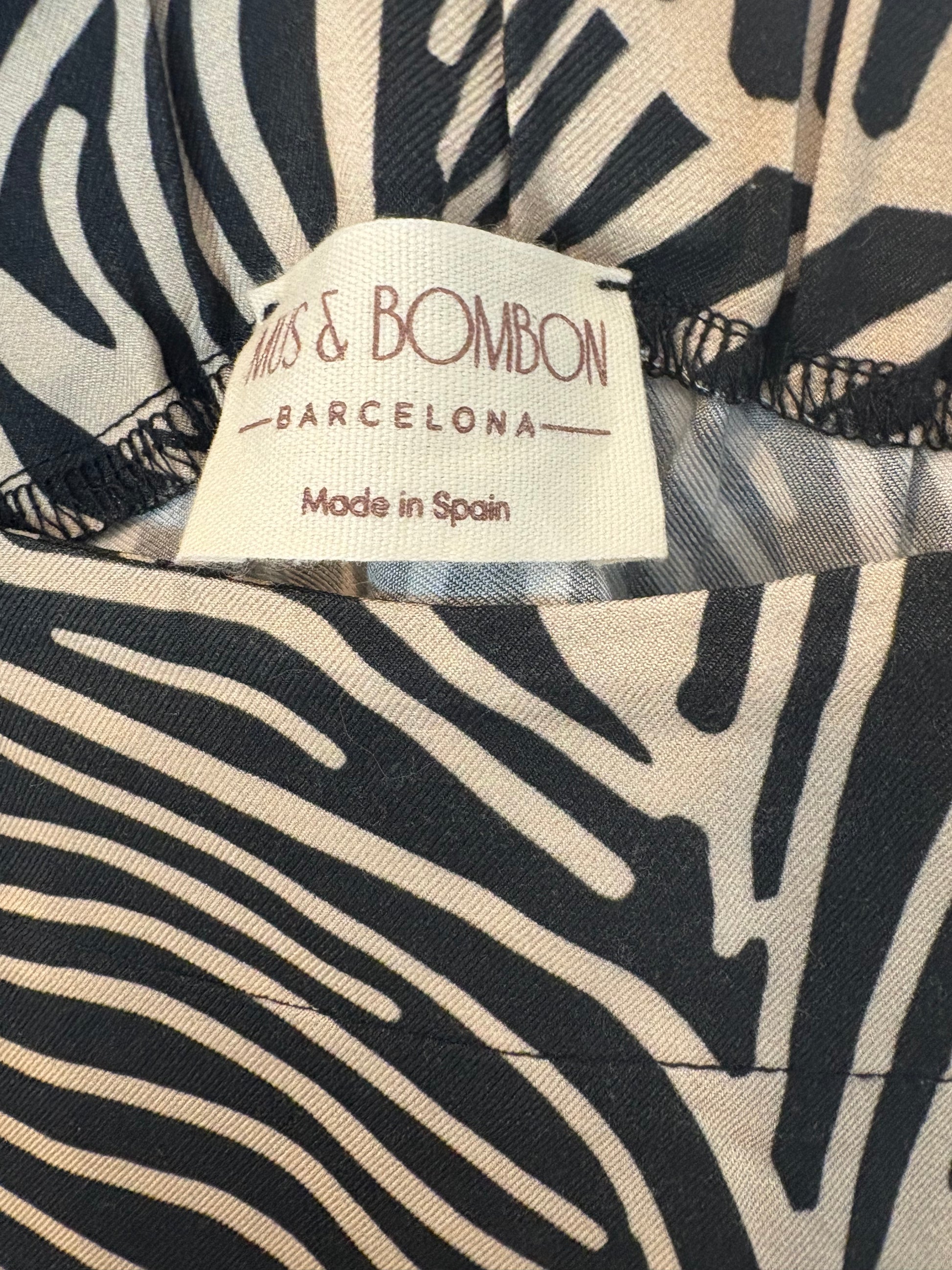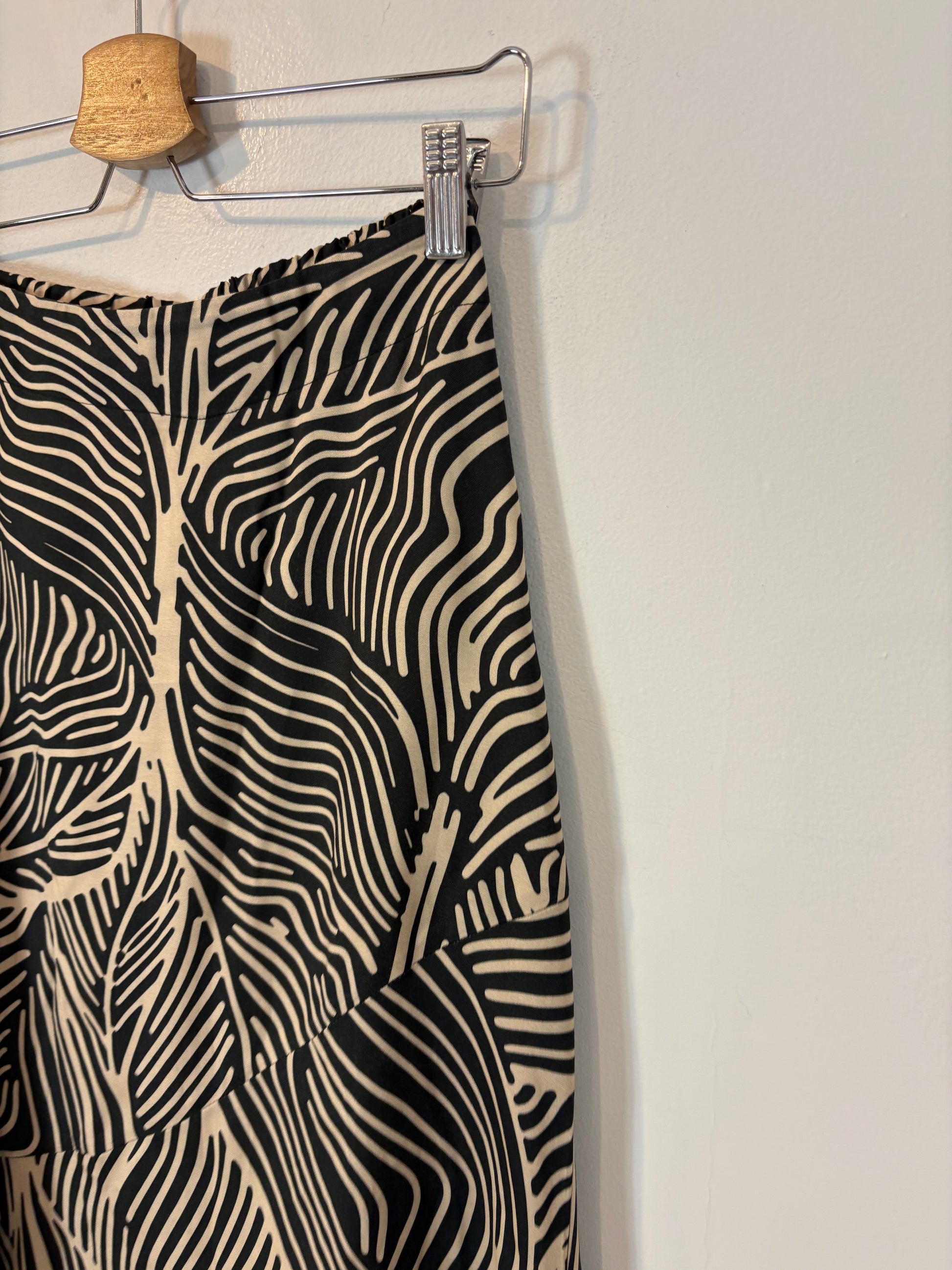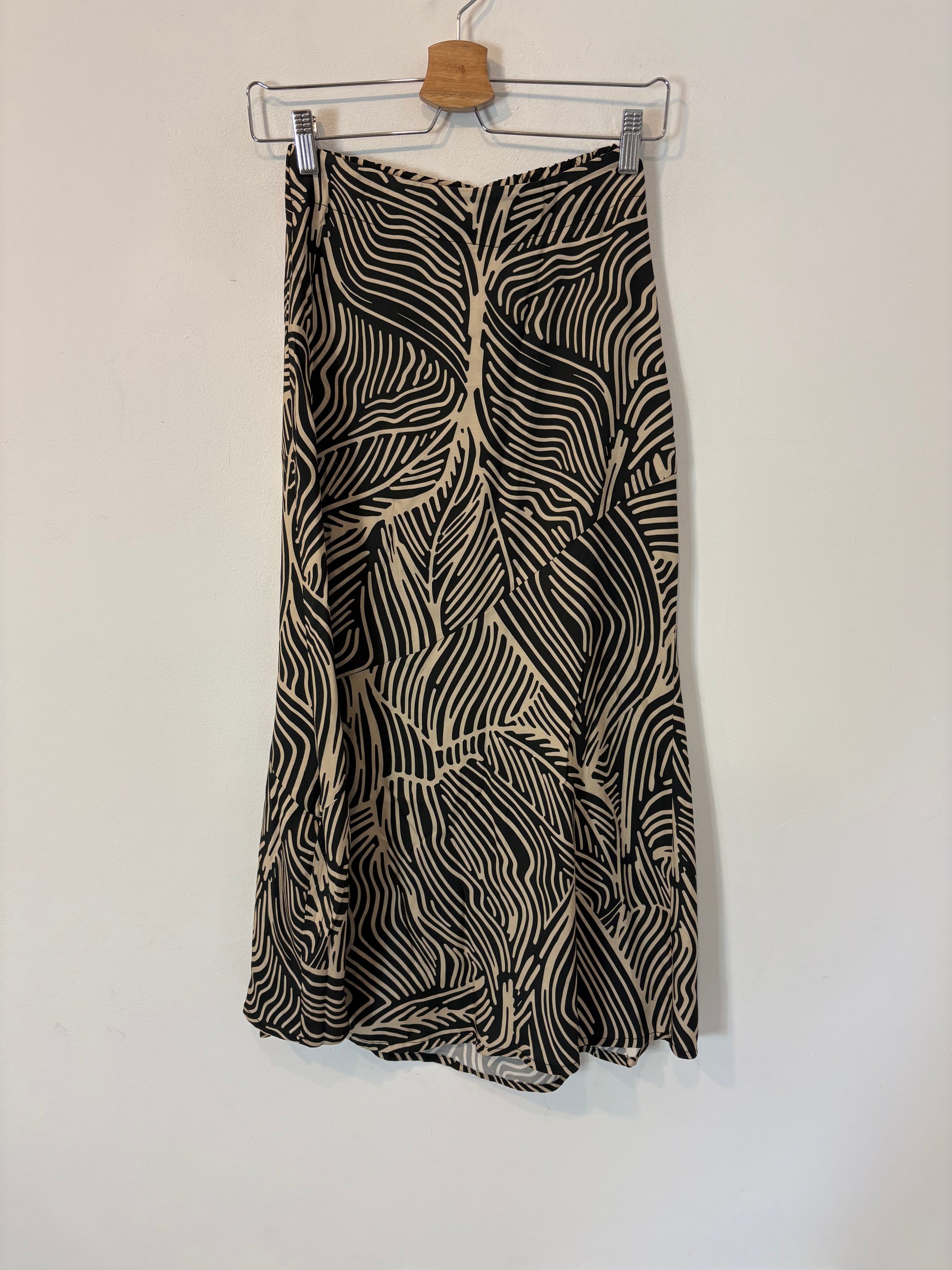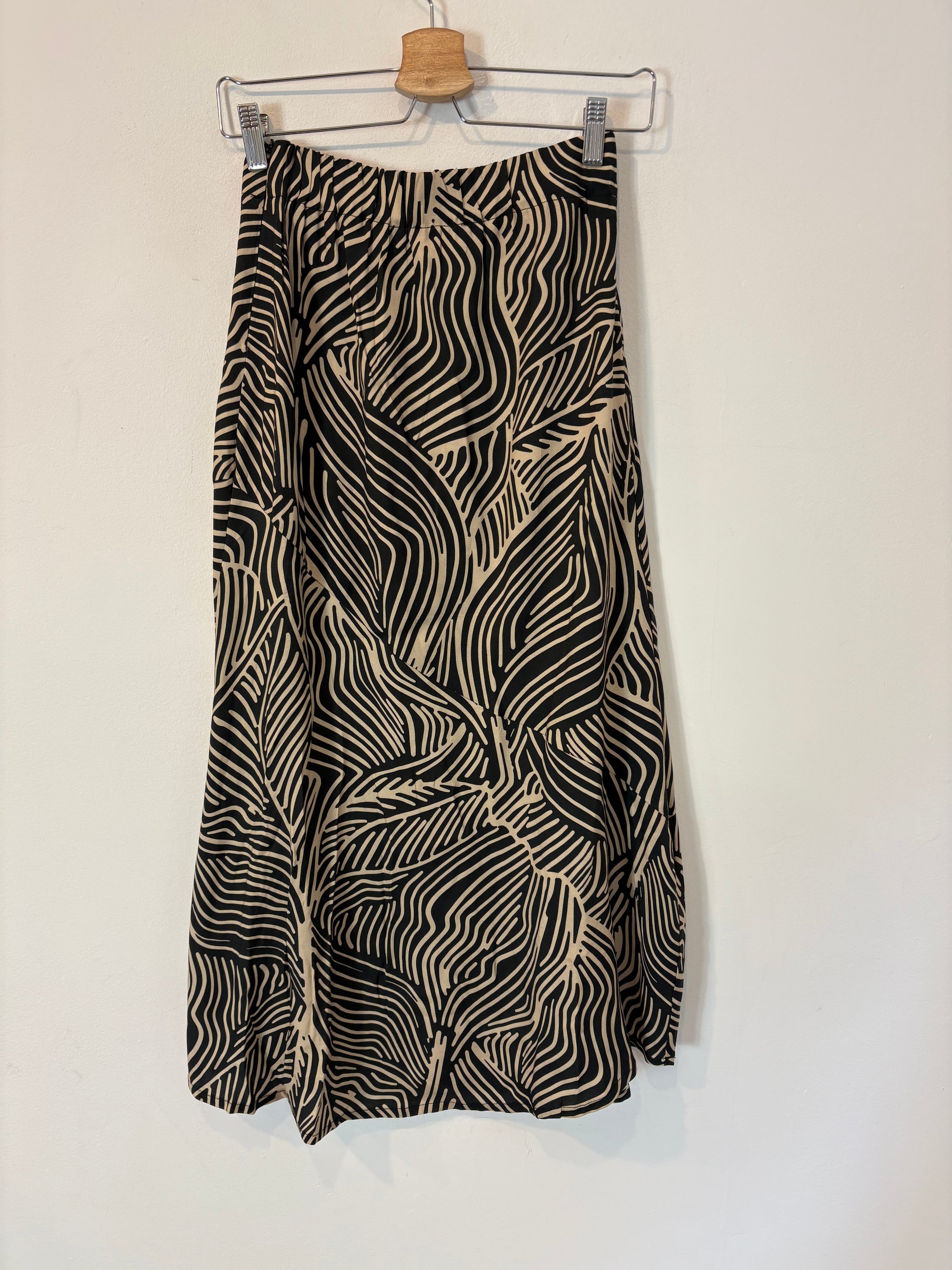 Cintura semi elástica 33 cm , largo 84 cm. Tonos beiges y negros