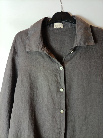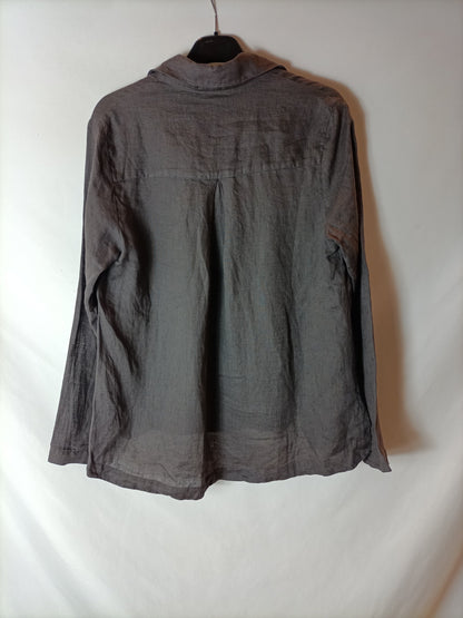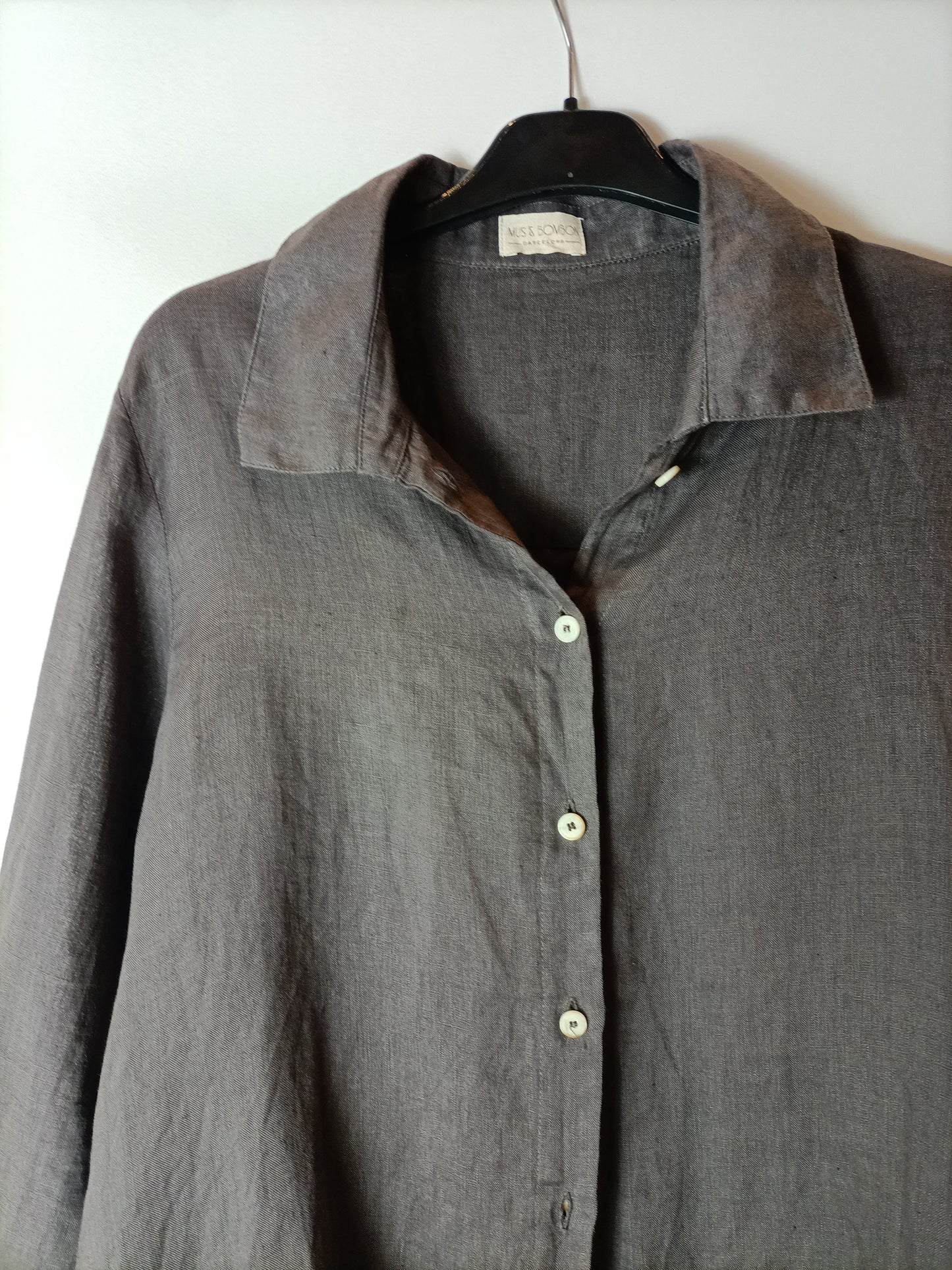 Camisa marrón/gris 100% lino. De sisa a sisa 51 cm
