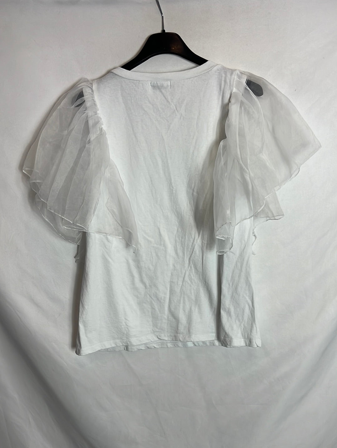 MUSE. Top blanco algodón detalle mangas. TU (s/m)