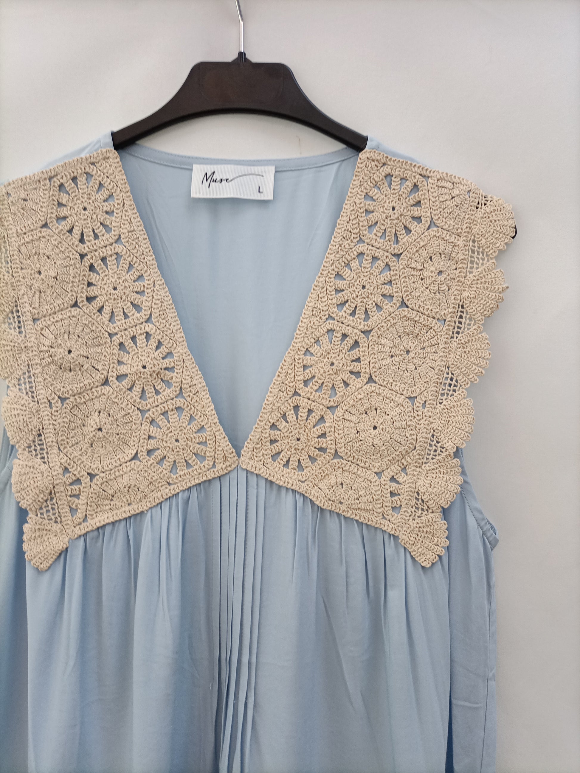 Vestido midi beige oversized. TARA: tiene una manchita amarilla debajo.De sisa a sisa 50 cm largo 106cm
