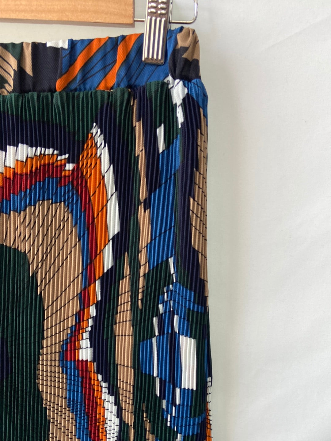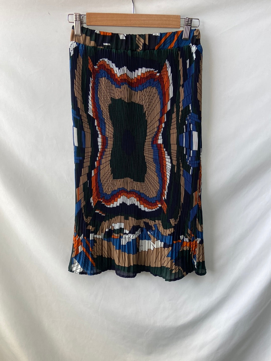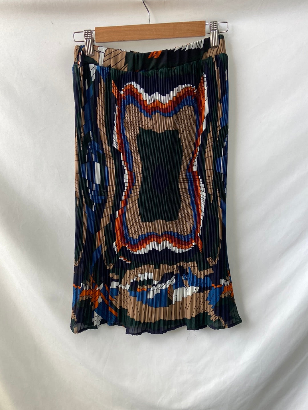 Falda fluida estampada de tonos verdes. cintura elástica. Largo 67 cm