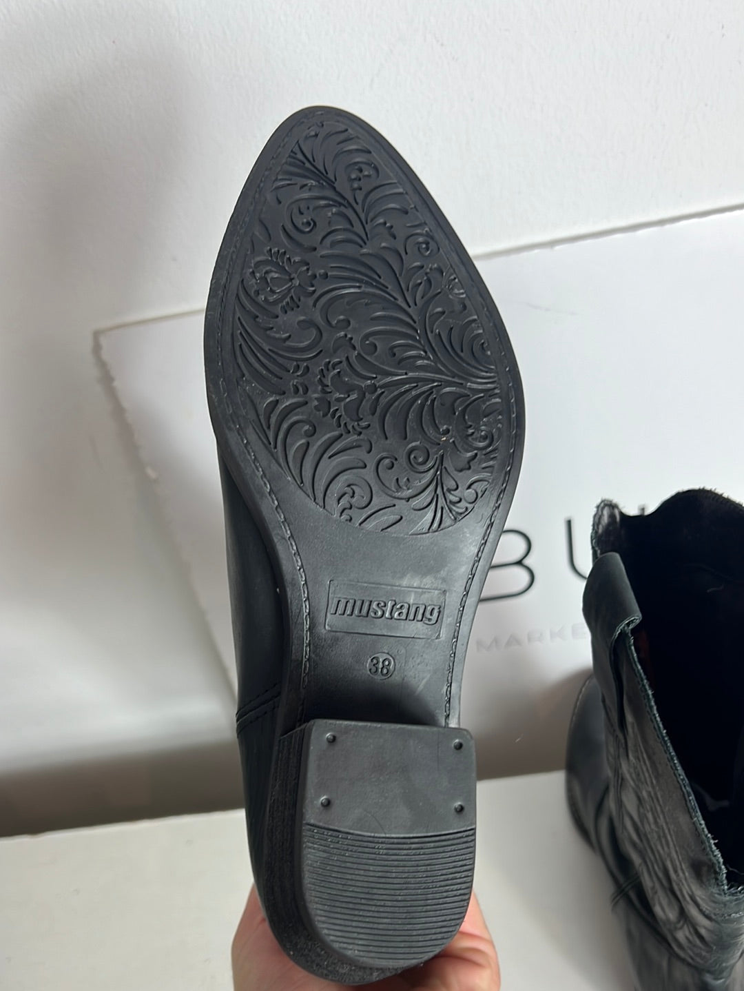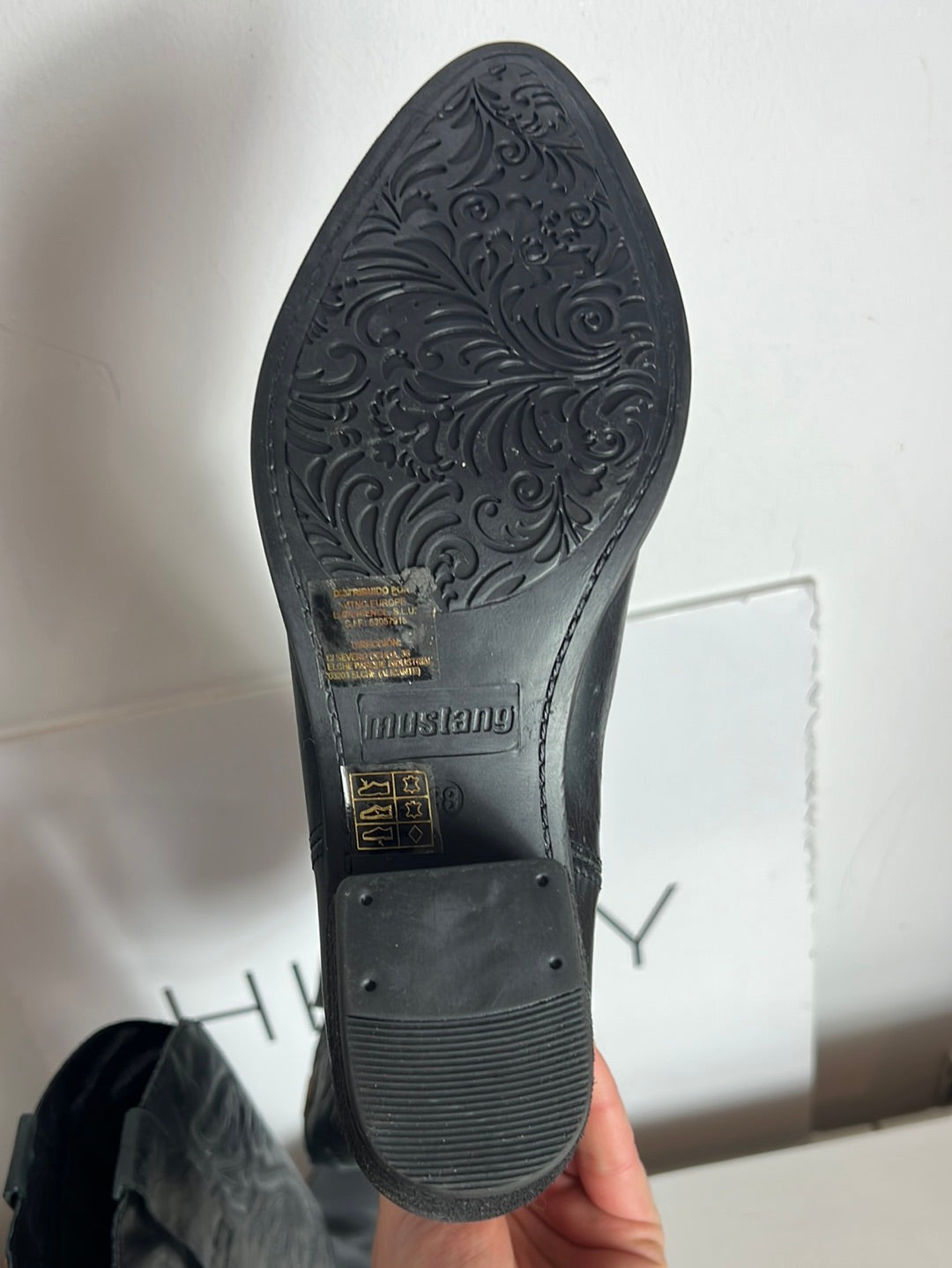 SIN ESTRENAR. Botas negras cowboy bordadas de piel.