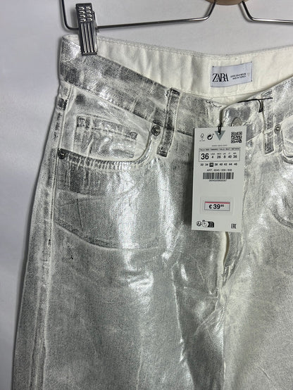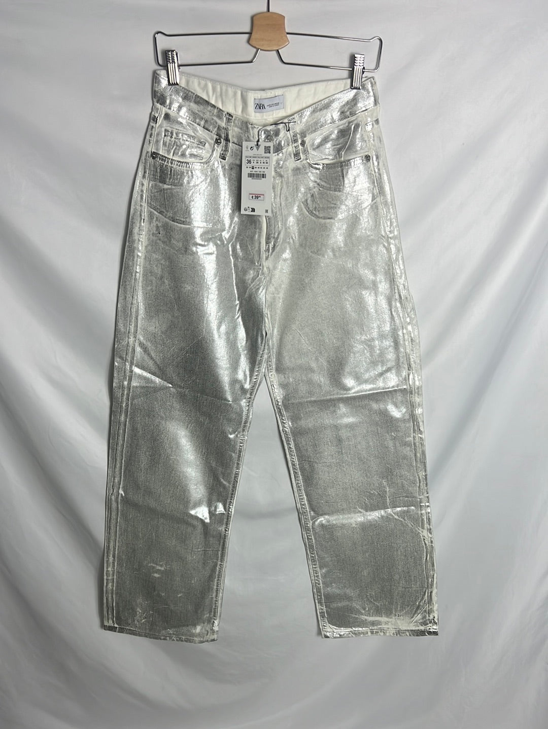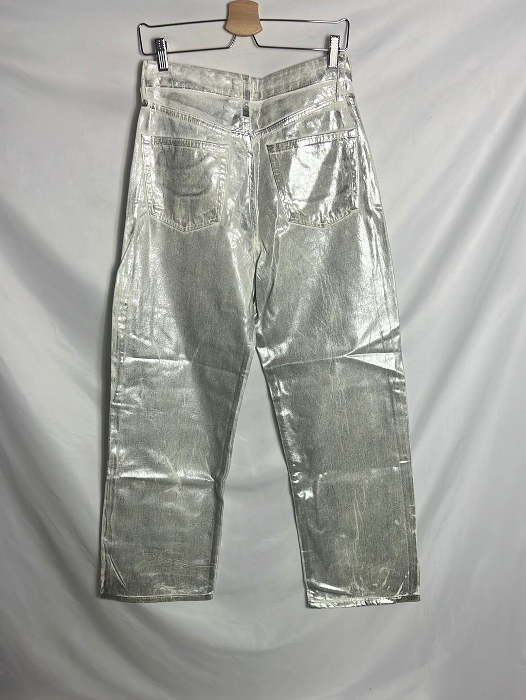 NUEVO CON ETIQUETA. Pantalón ancho plateado. cintura 36cm largo 110cm