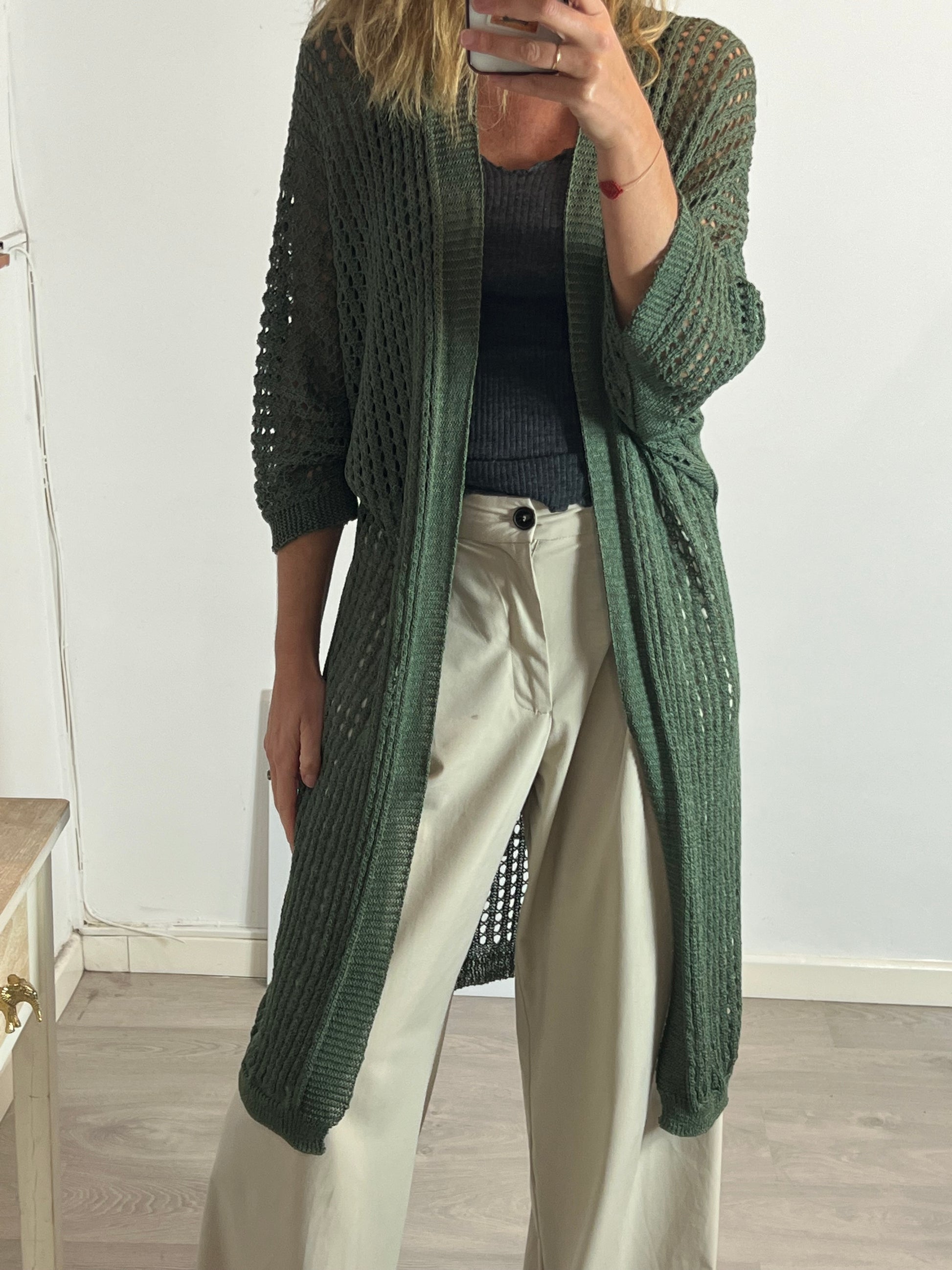 N DE NUBE. Cárdigan verde troquelado T.l