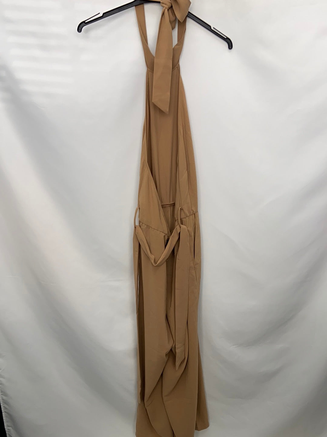 Mono culotte color camel oscuro atado al cuello con espalda descubierta. Cintura elástica.