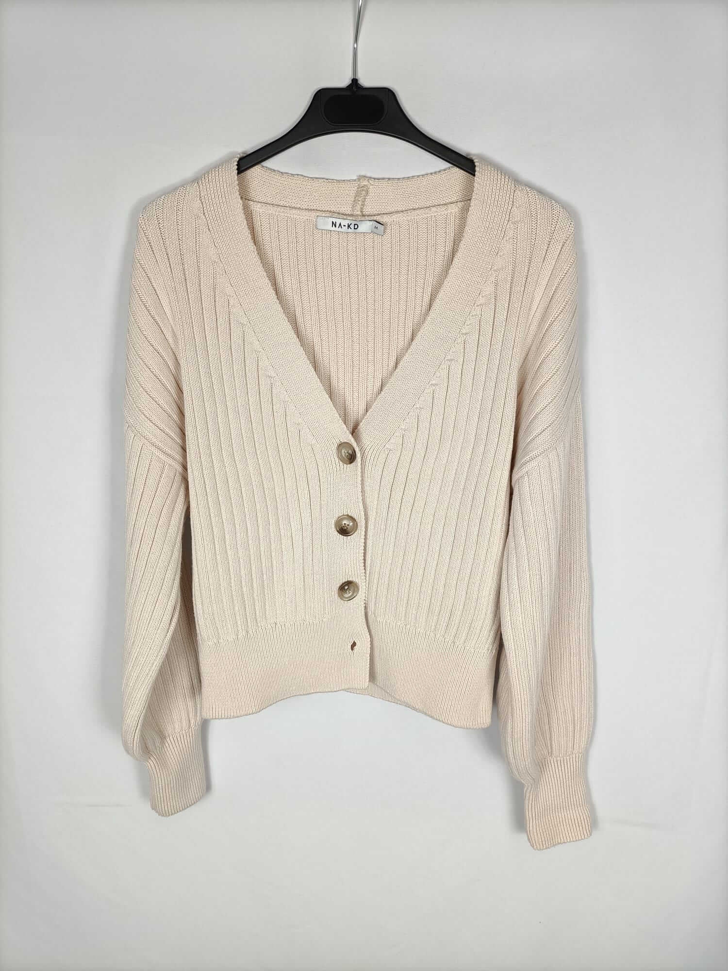 Na-kd. Jersey beige de canalé con botones de nácar. Gordito. Elástico. Largo 55 cm. Tara: le falta un botón