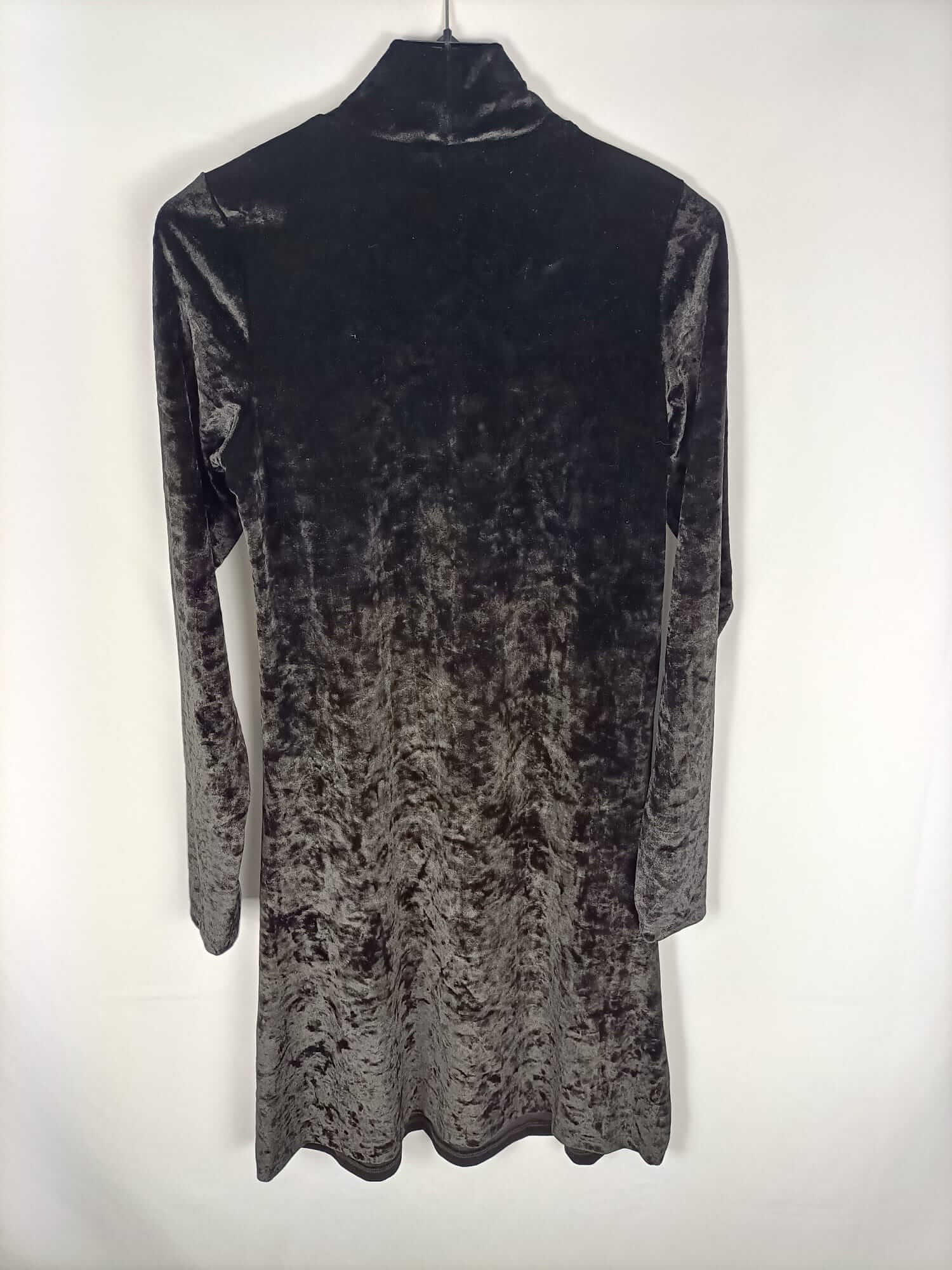 Na-kd. Vestido de terciopelo negro con el cuello perkins. Tejido elástico. Largo por la rodilla. Largo 95 cm