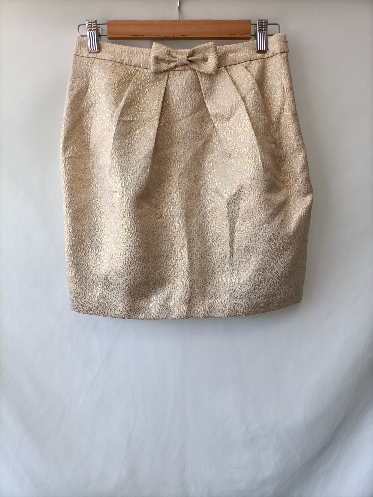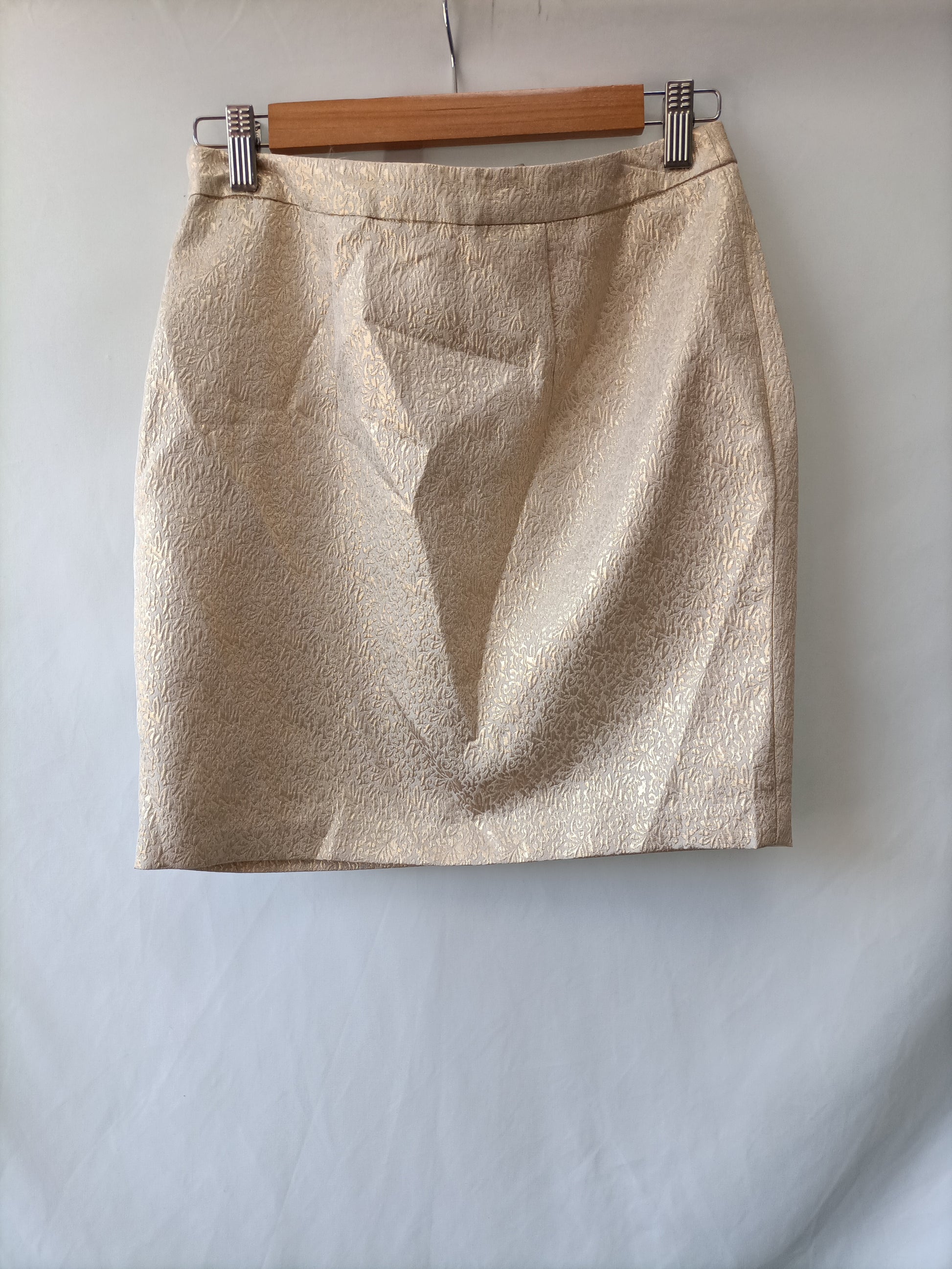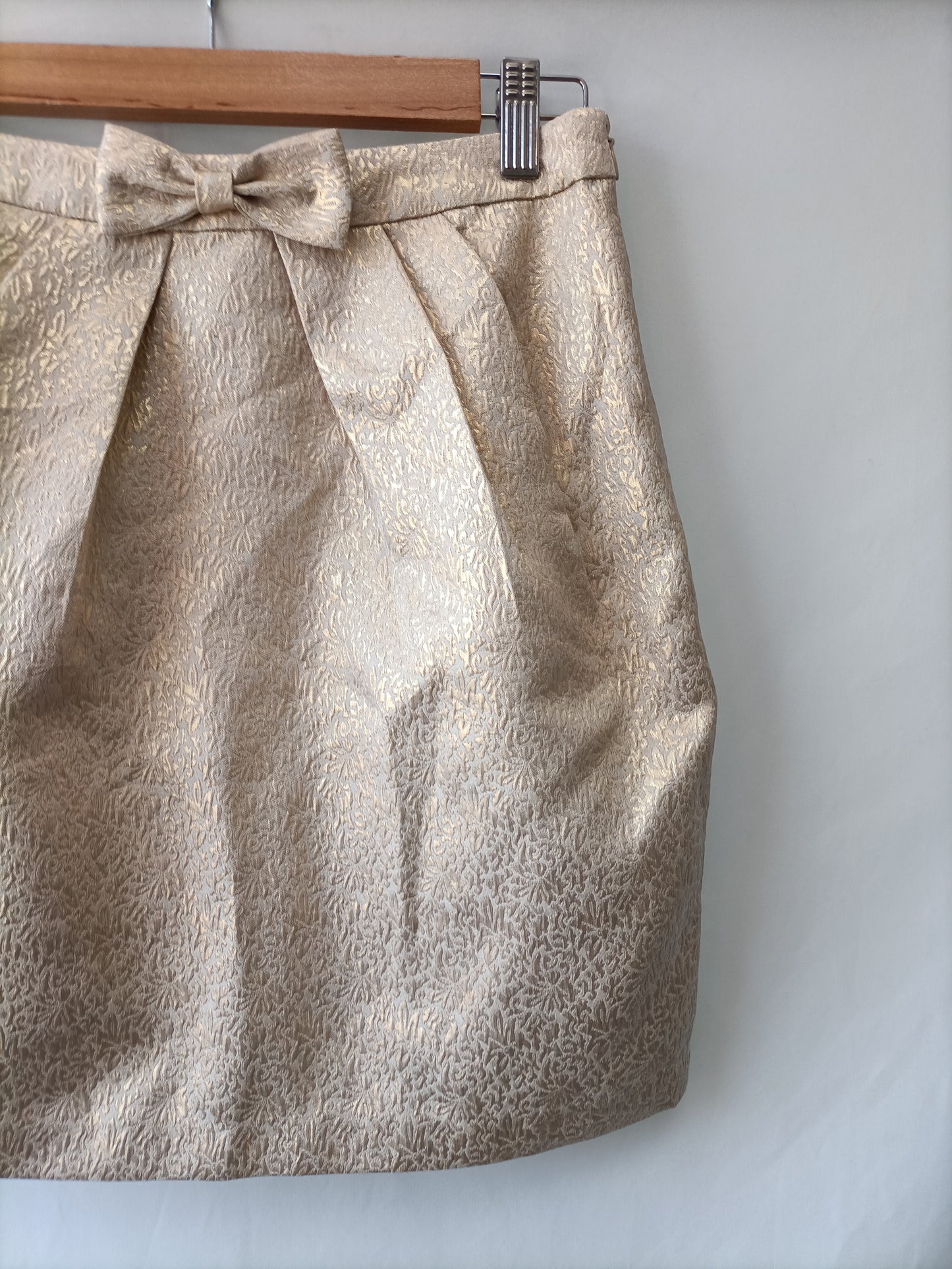 Falda corta de vestir beige con hilos dorados. No es elástica. Cintura 37 cm largo 46 cm