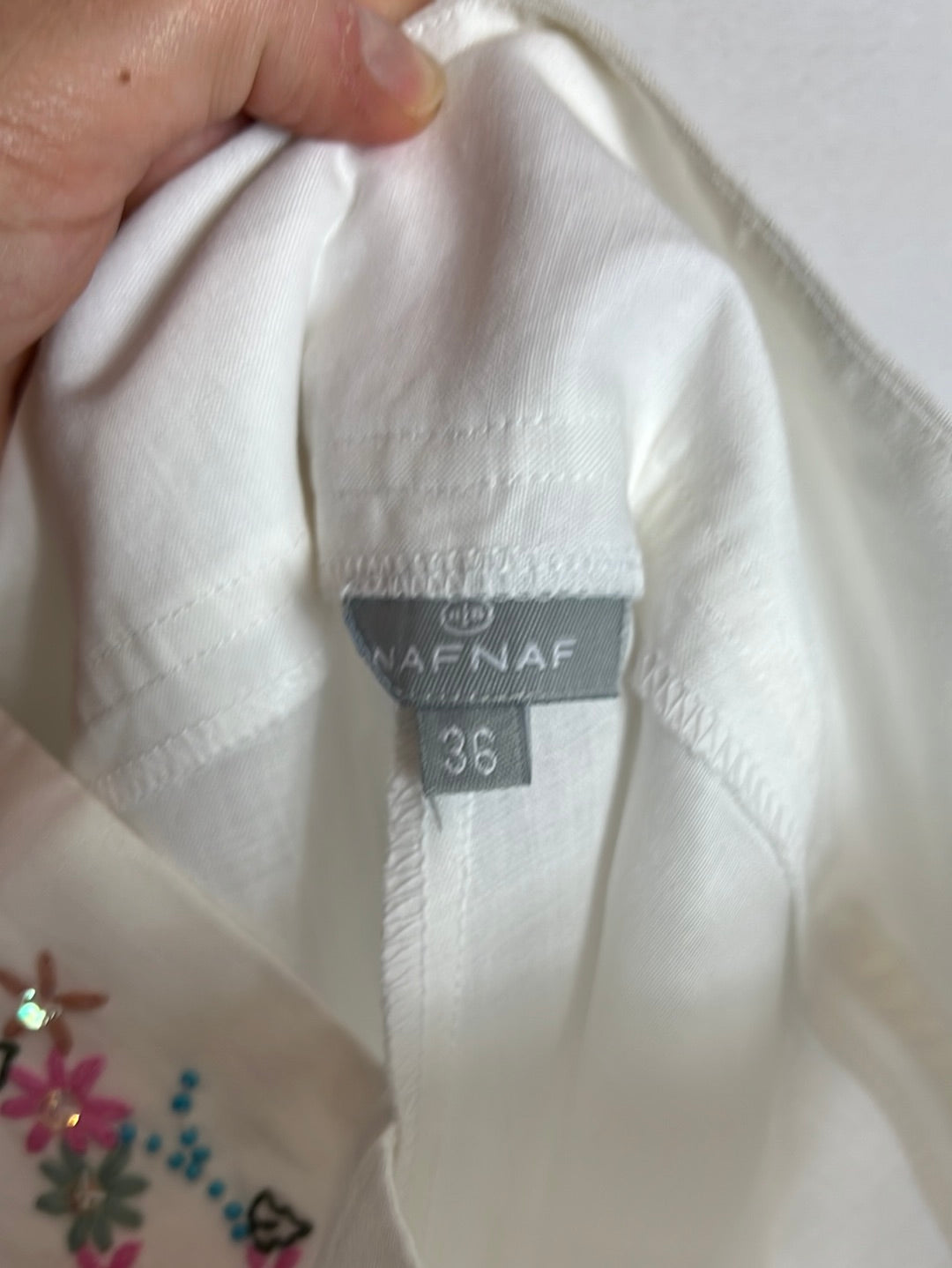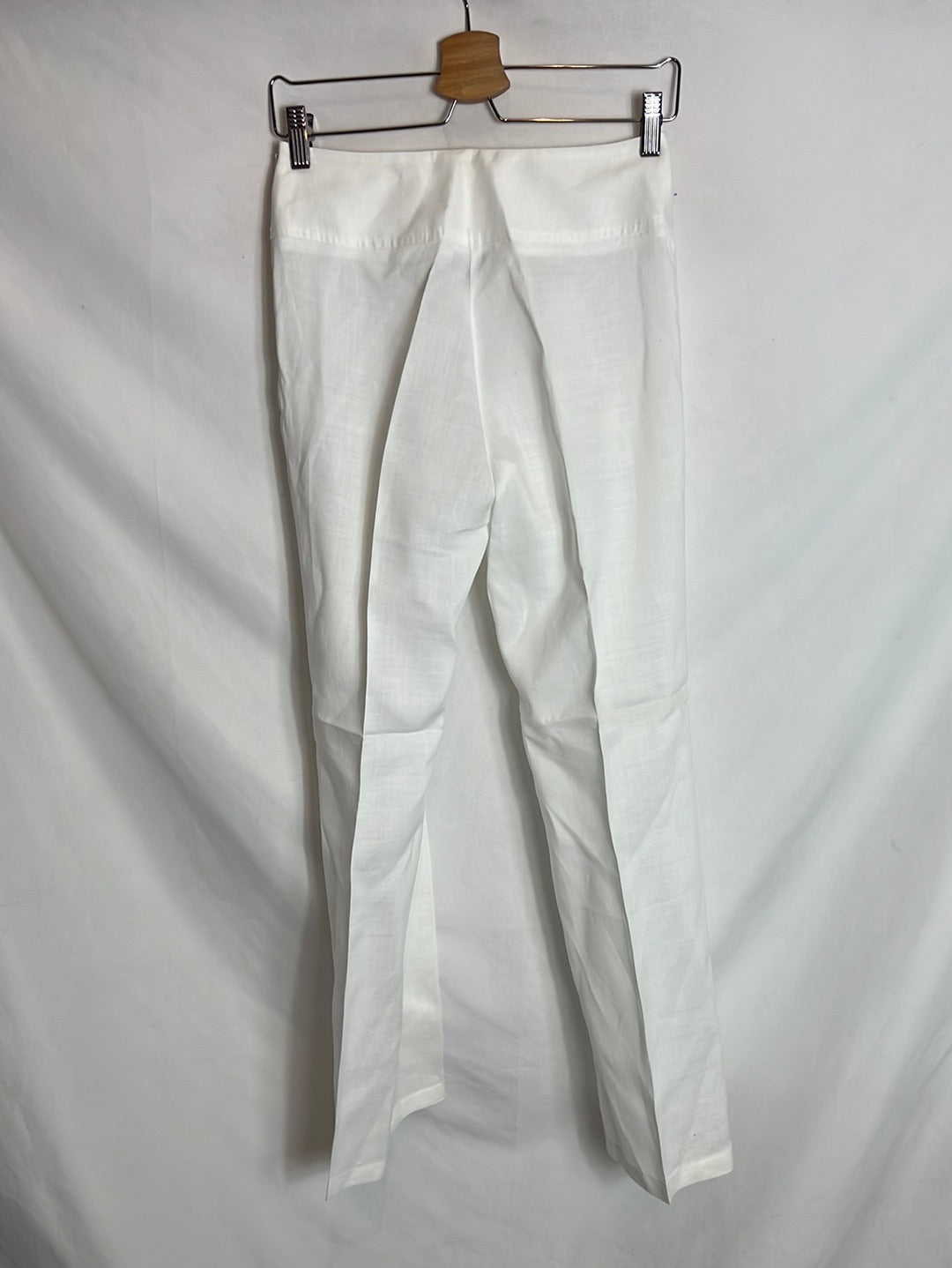 NAF NAF. Pantalón Lino blanco detalle cintura. T 36