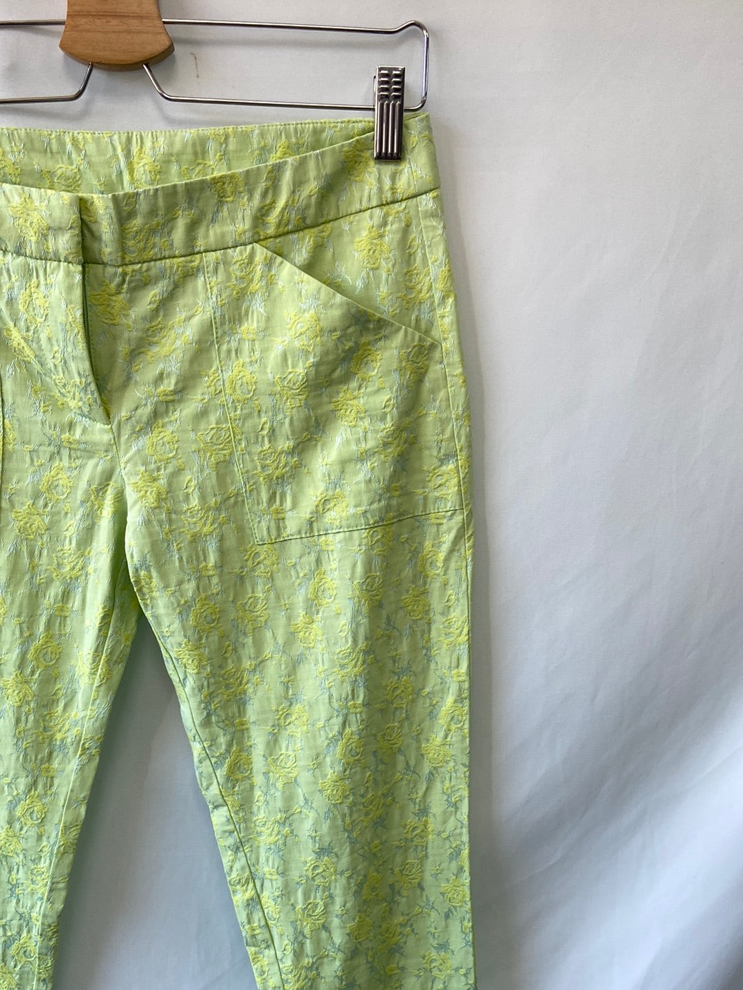 NAF NAF. Pantalón verde lima flores T.36 (40)