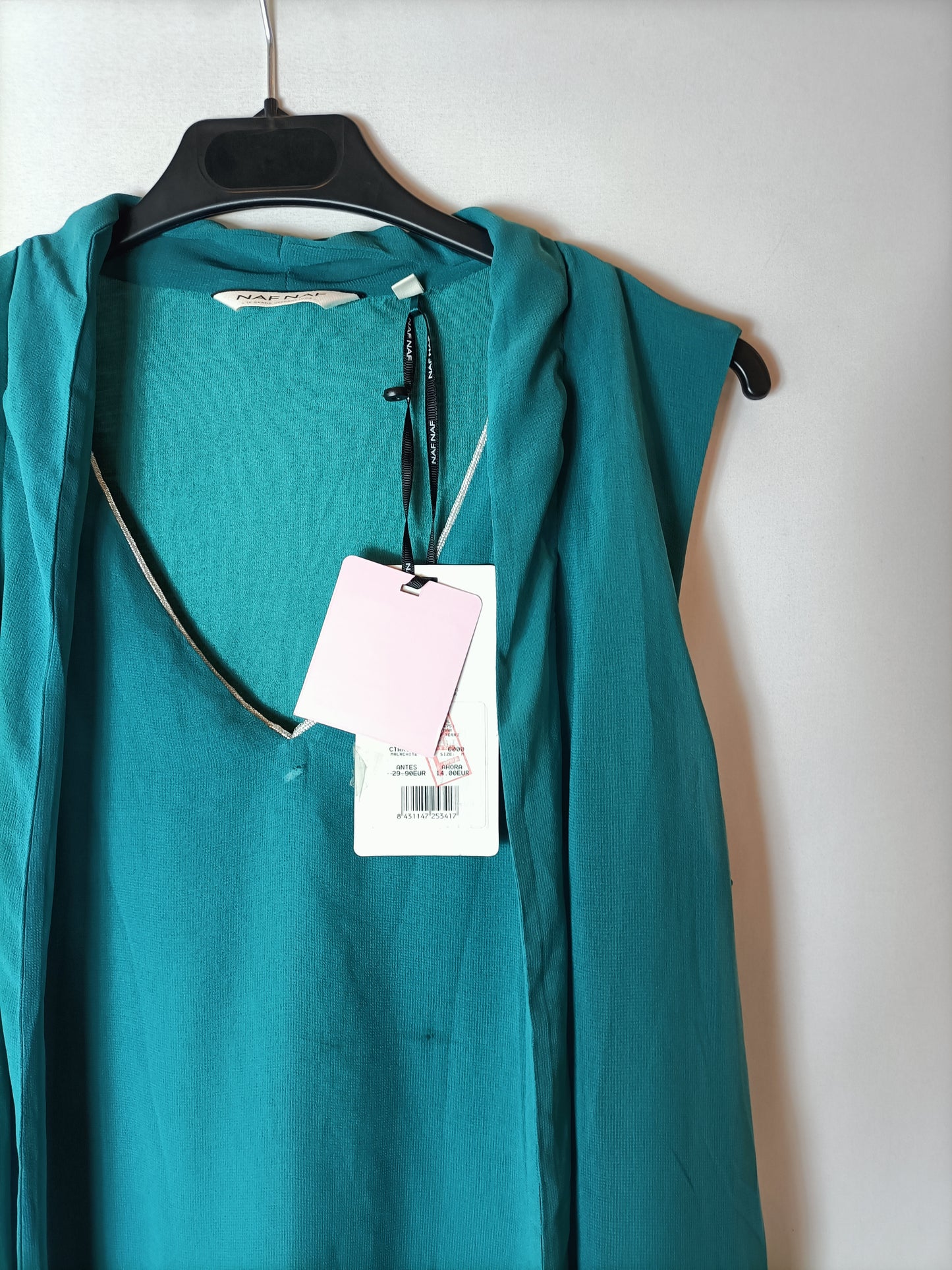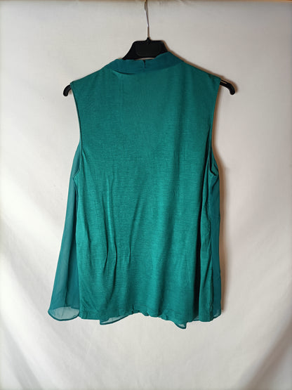 NUEVO CON ETIQUETA. top verde fluido detalle plateado. tara: manchita en la parte delantera