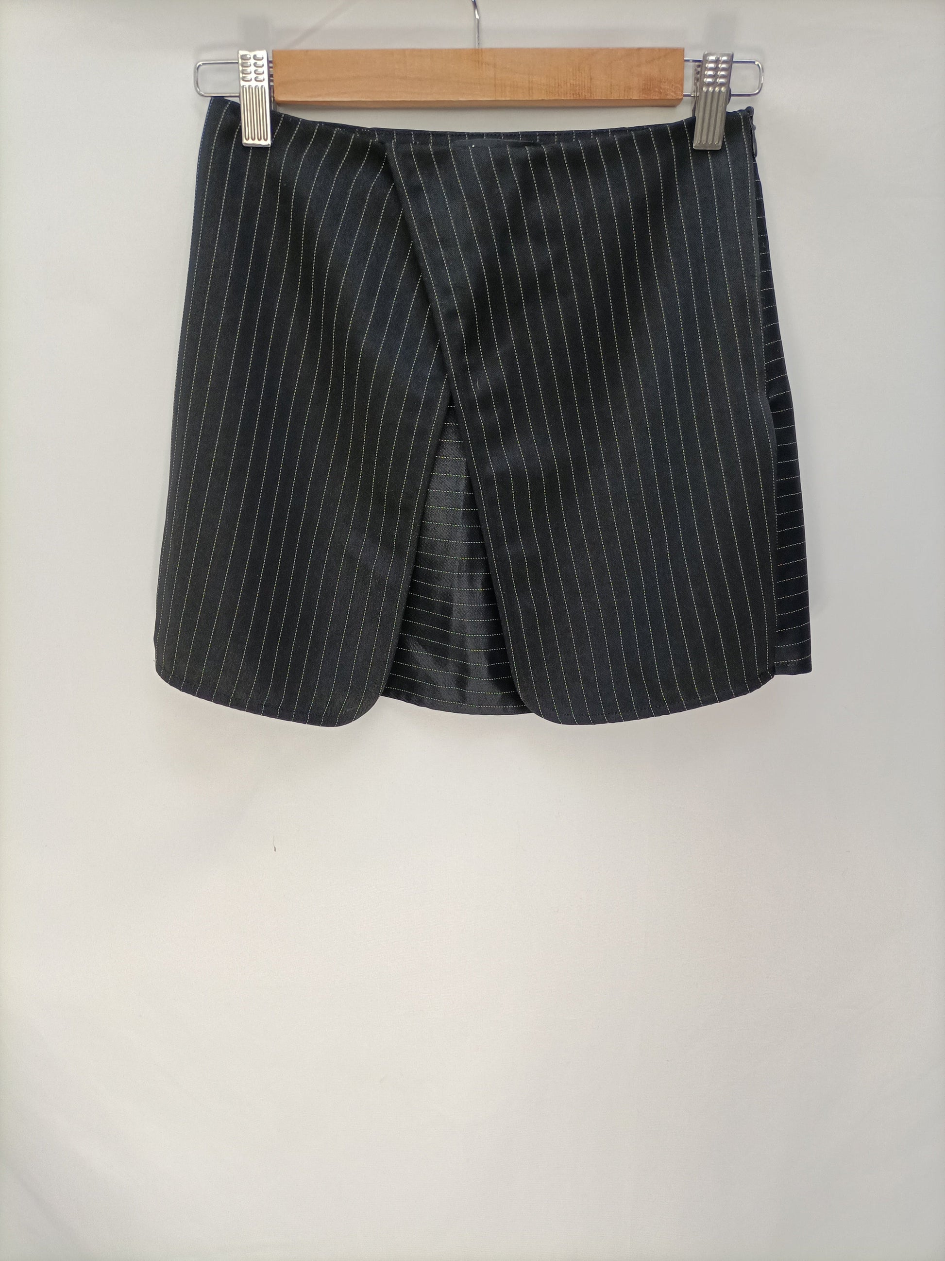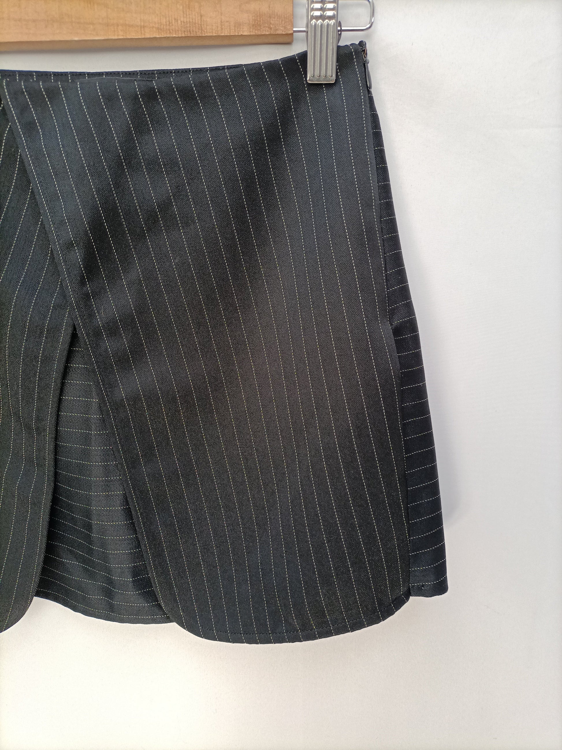 Falda mini rgros con rayas diplomática beige. Cruzada por delante. No elastico. Cintura 32 cm Largo 36 cm