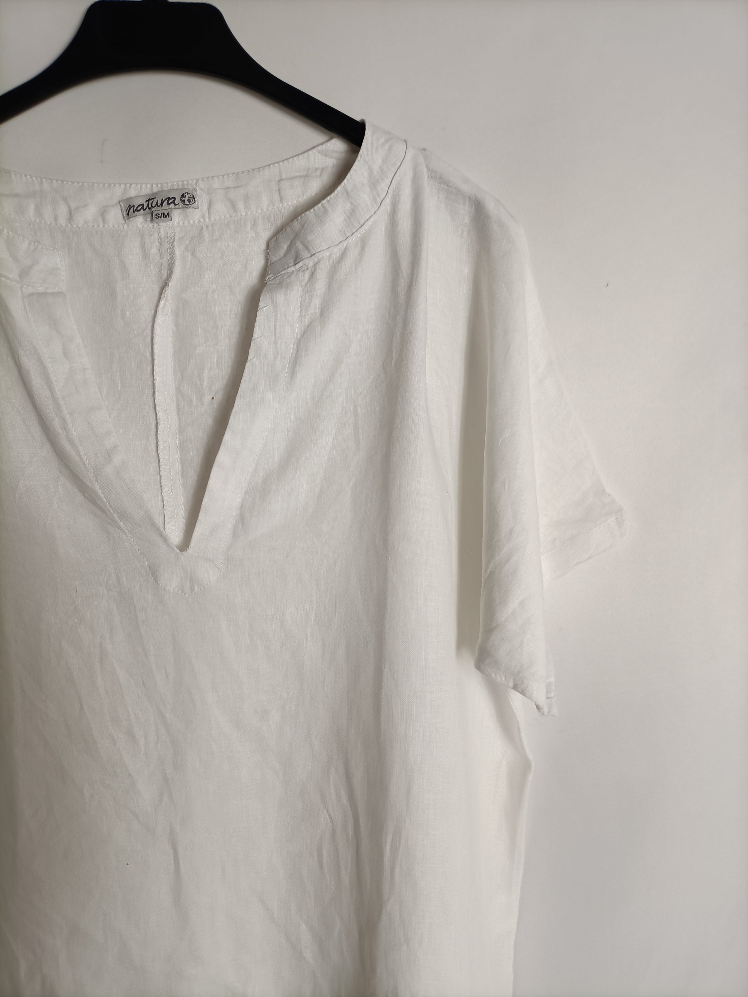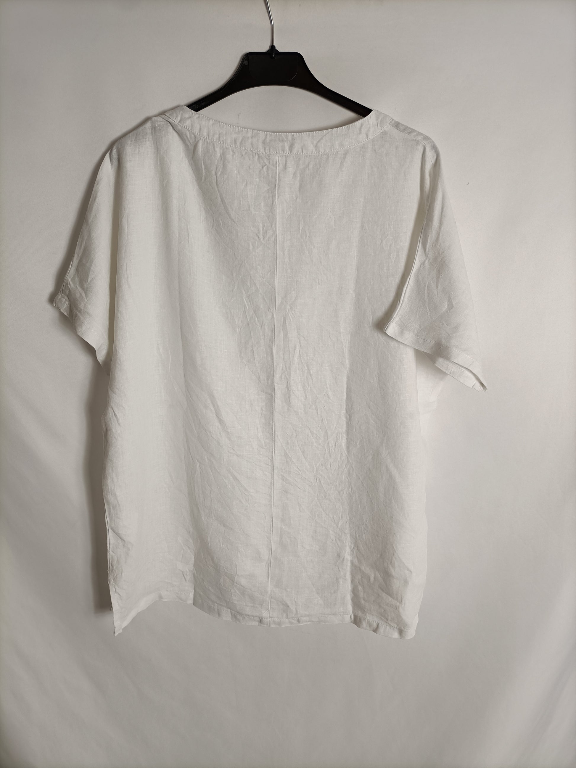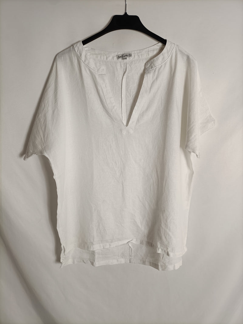 Blusa blanca fluida de lino. Mangas efecto murciélago