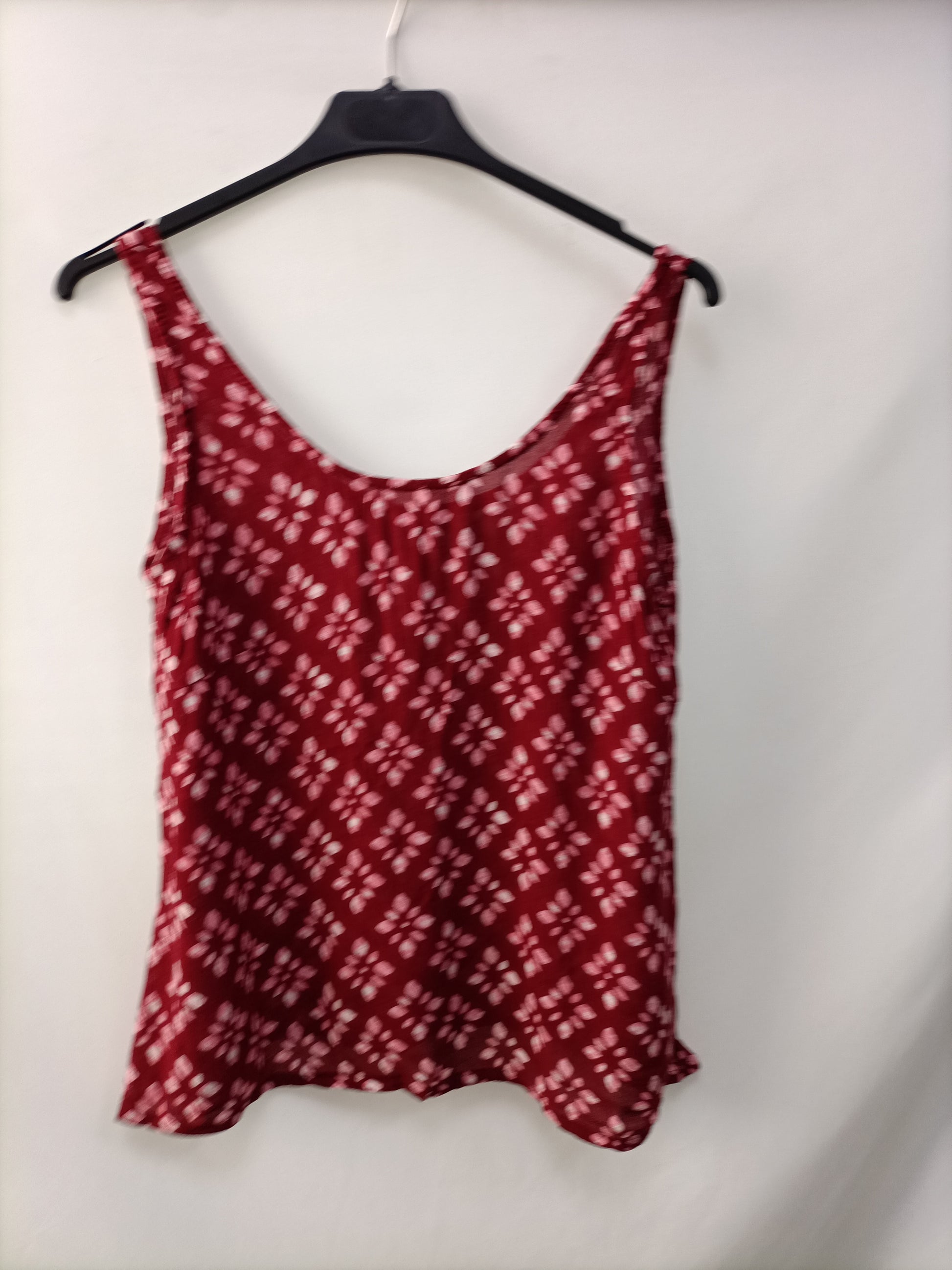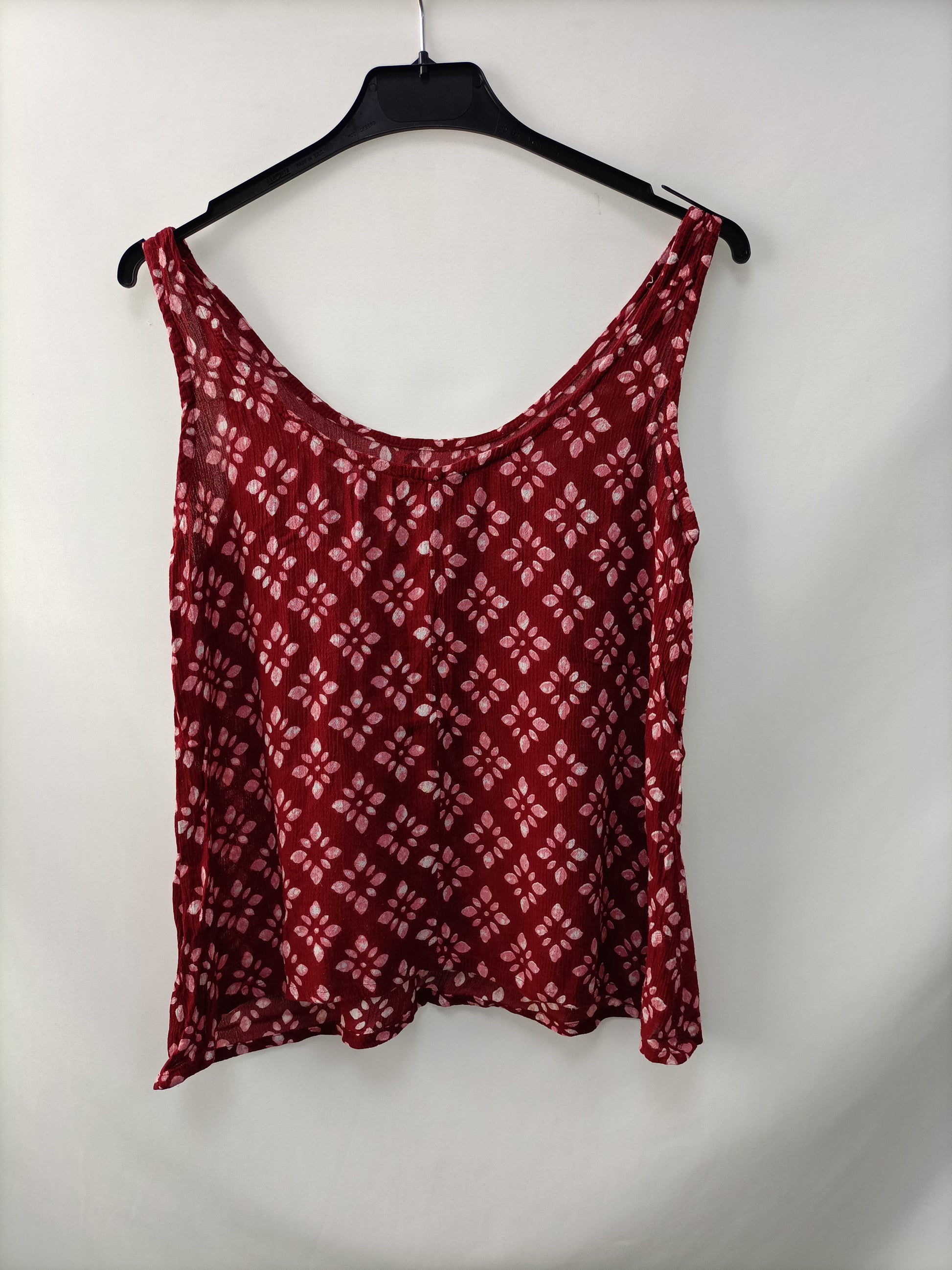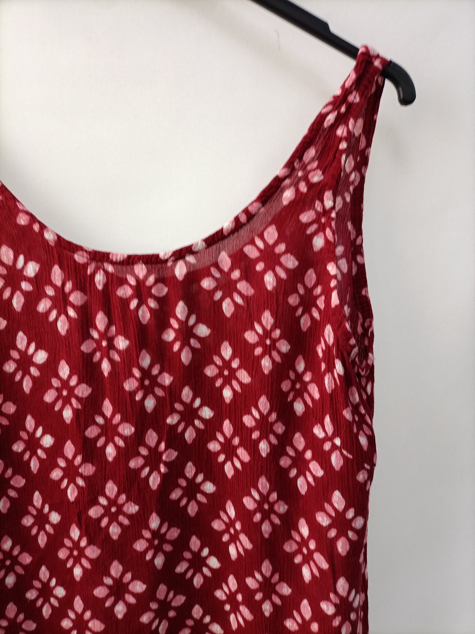 Top estampado burdeos y rosa. De sisa a sisa 46 cm largo 58 cm