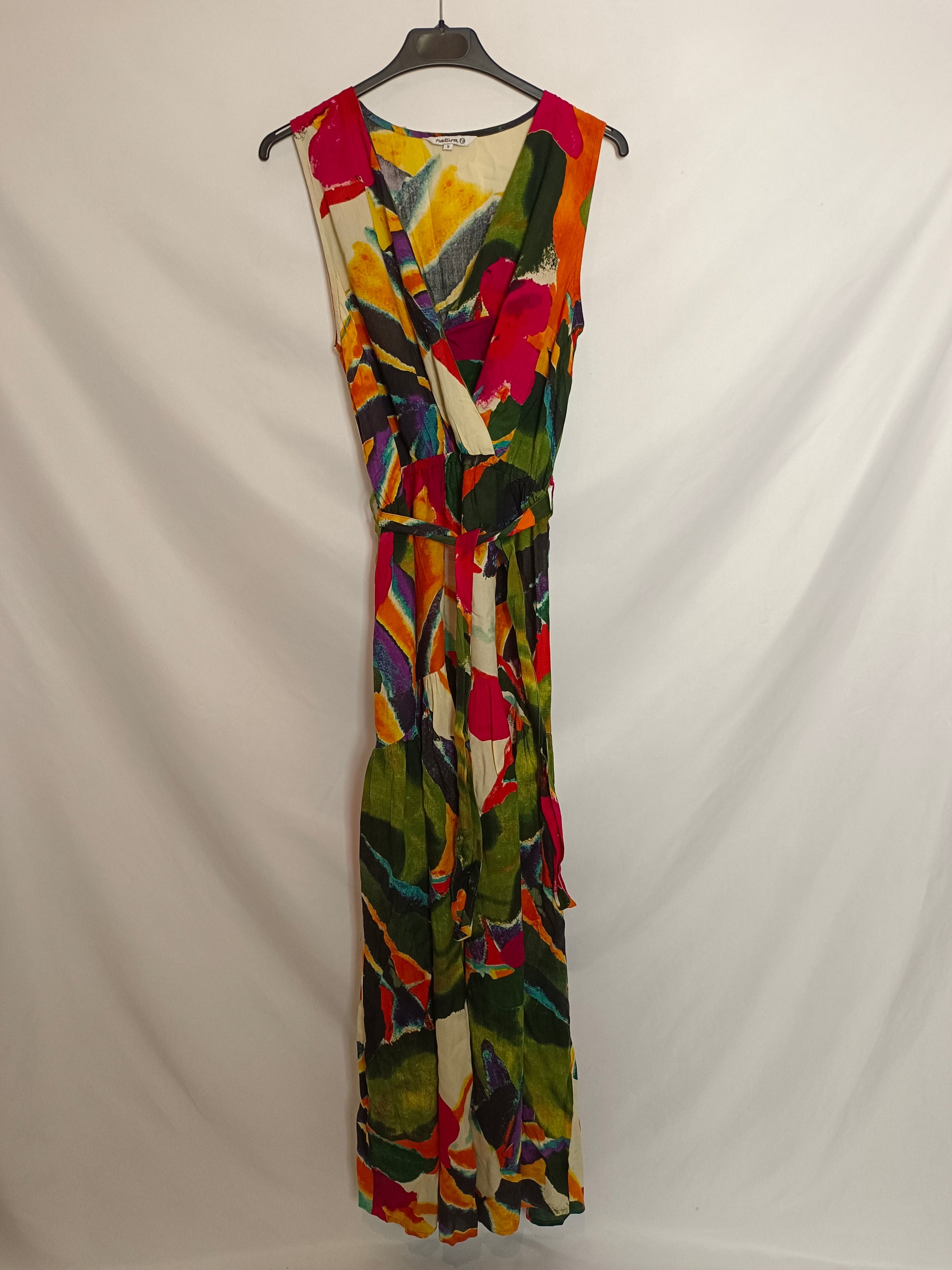 vestido largo estampado con escote cruzado y apertura en la parte de abajo