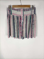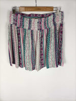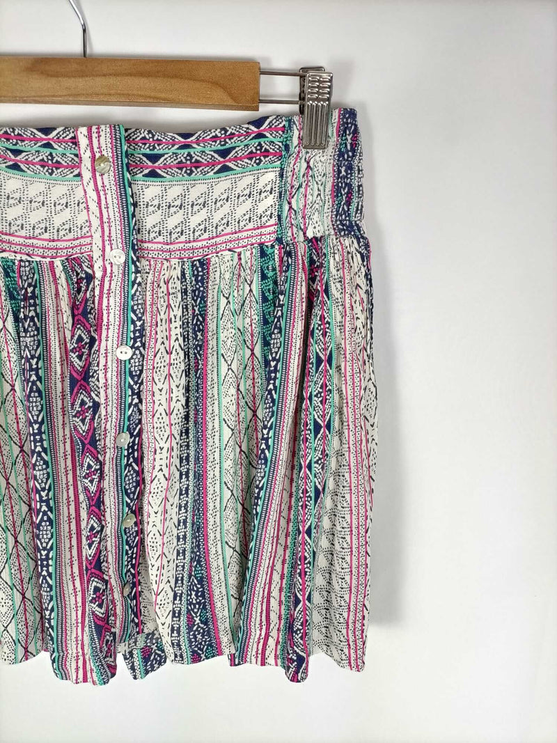 Natura. L. Falda fluida abotonada con estampado étnico. Cintura elástica. Largo 42 cm