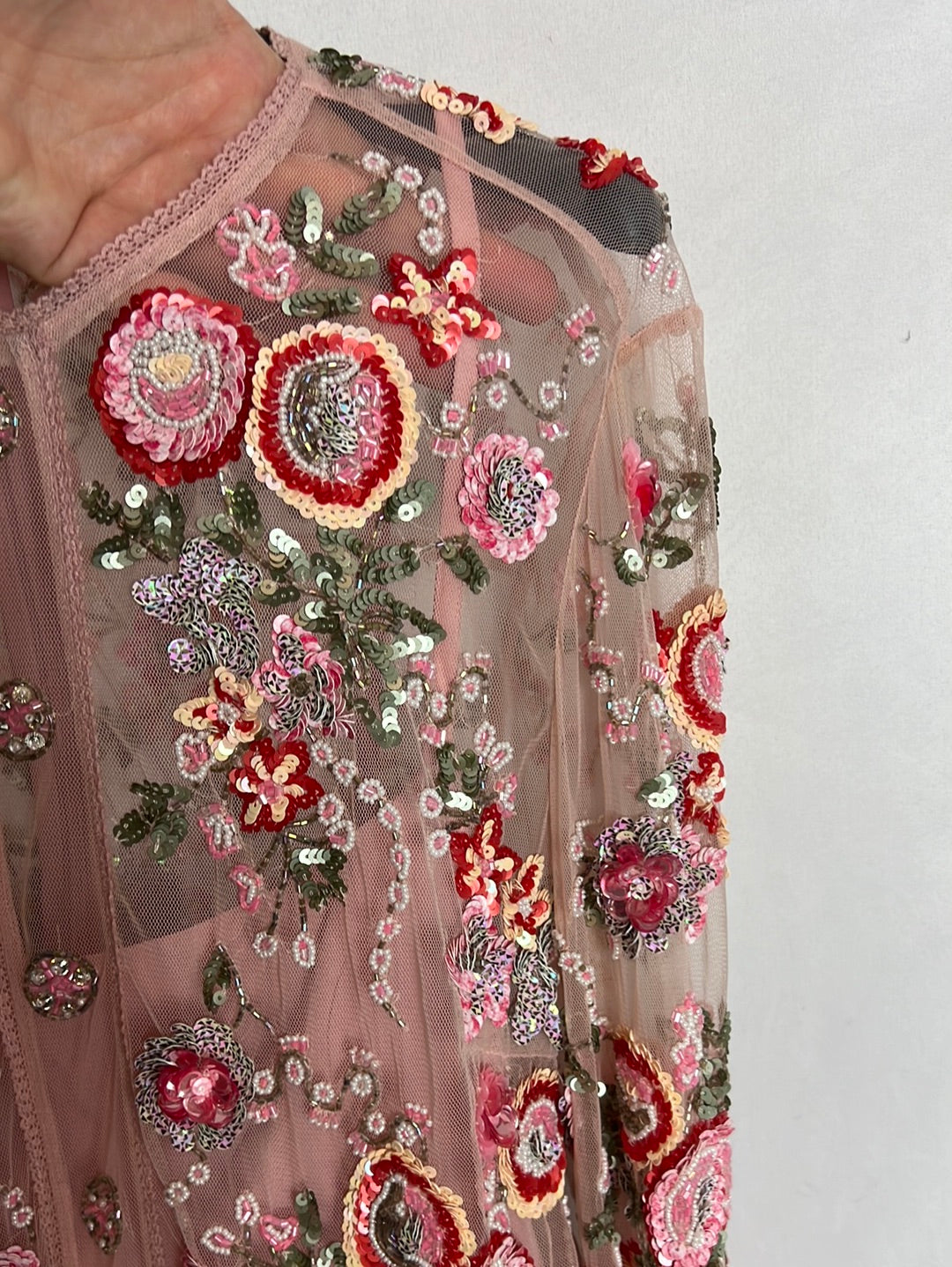 NEEDLE&THREAD. Mono corto rosa tul y pedrería . T 36