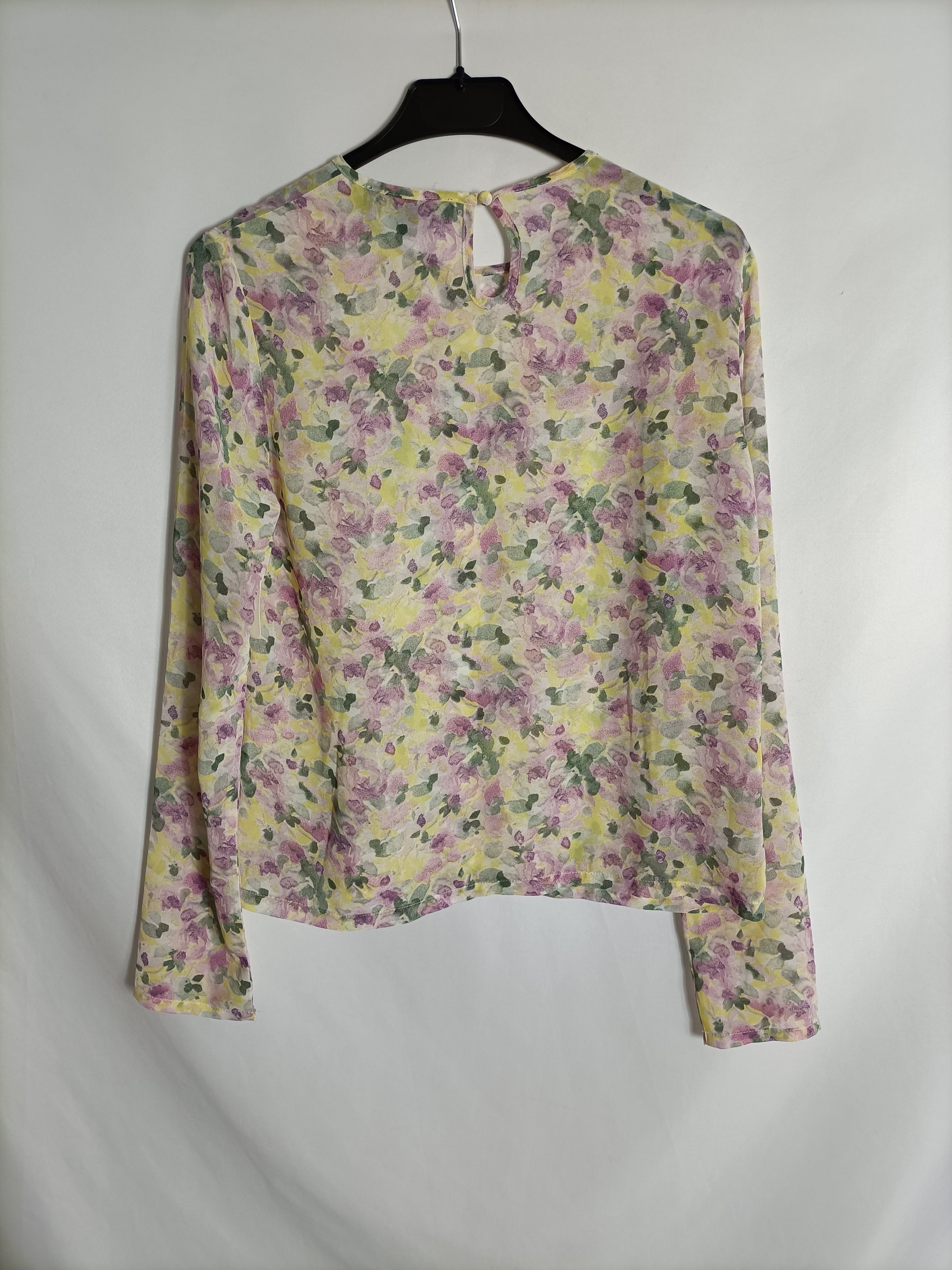 NUEVO CON ETIQUETA. Blusa blanca flores. semitransparente.