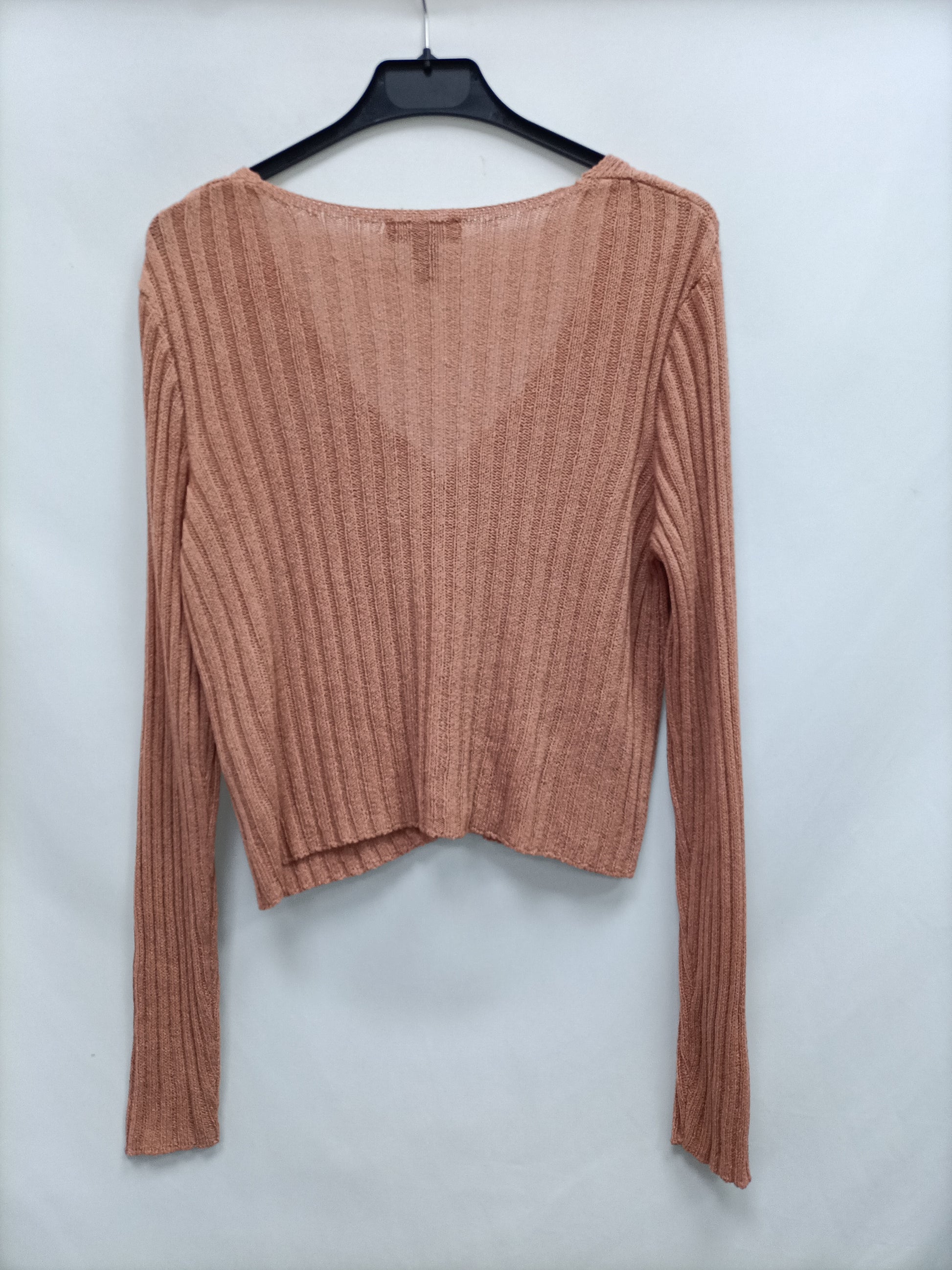 jersey estilo rebeca de canalé naranja palo. cortita. largo 44 cm