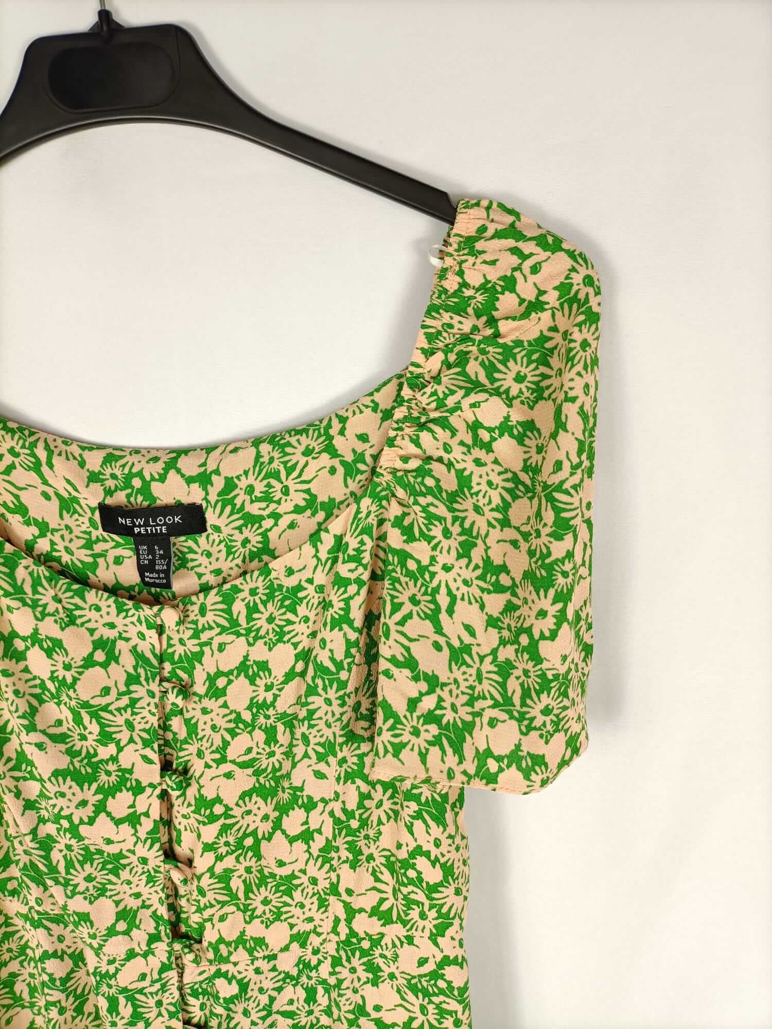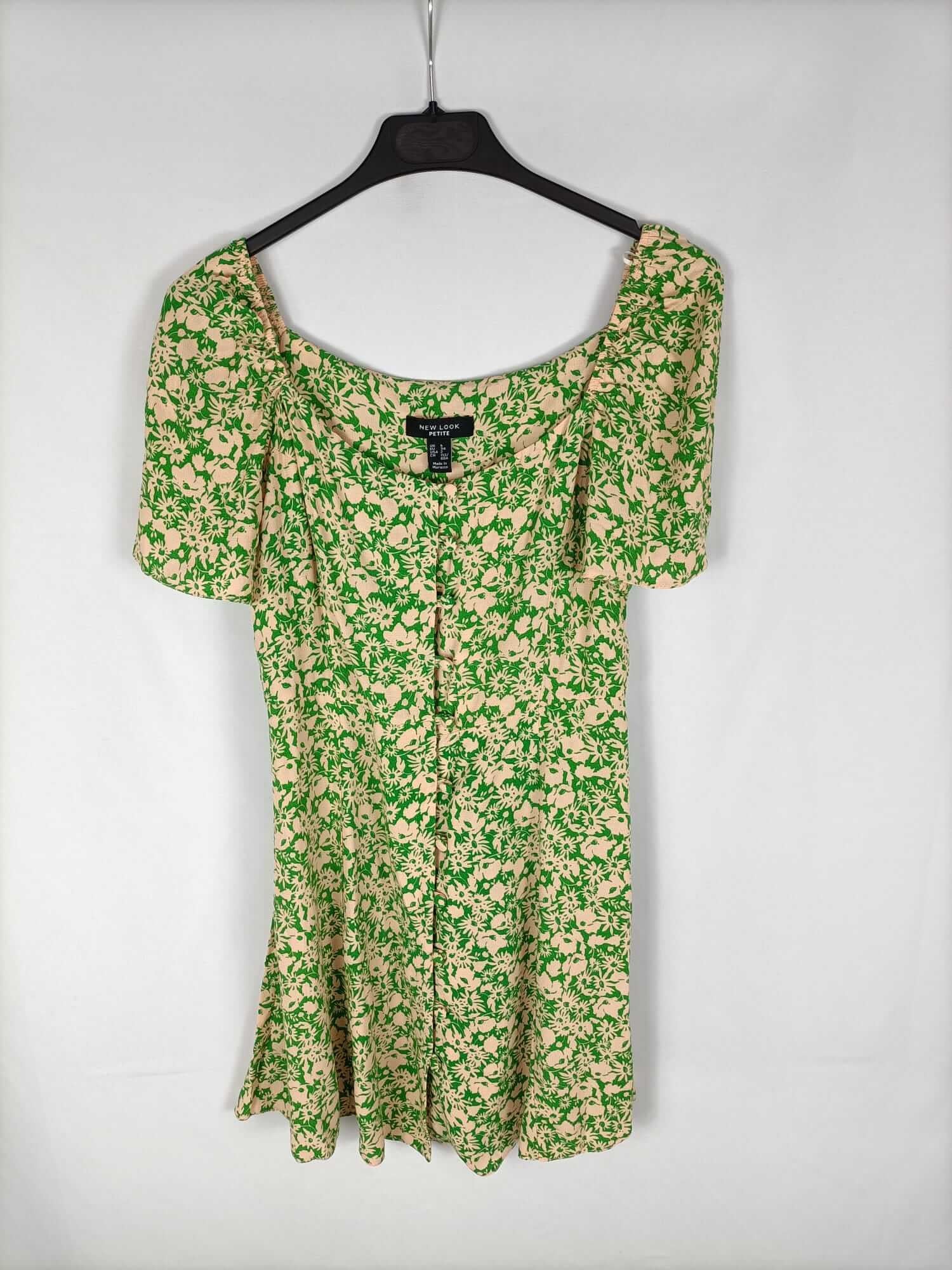 NEW LOOK. Vestido verde estampado flores beige T. 34