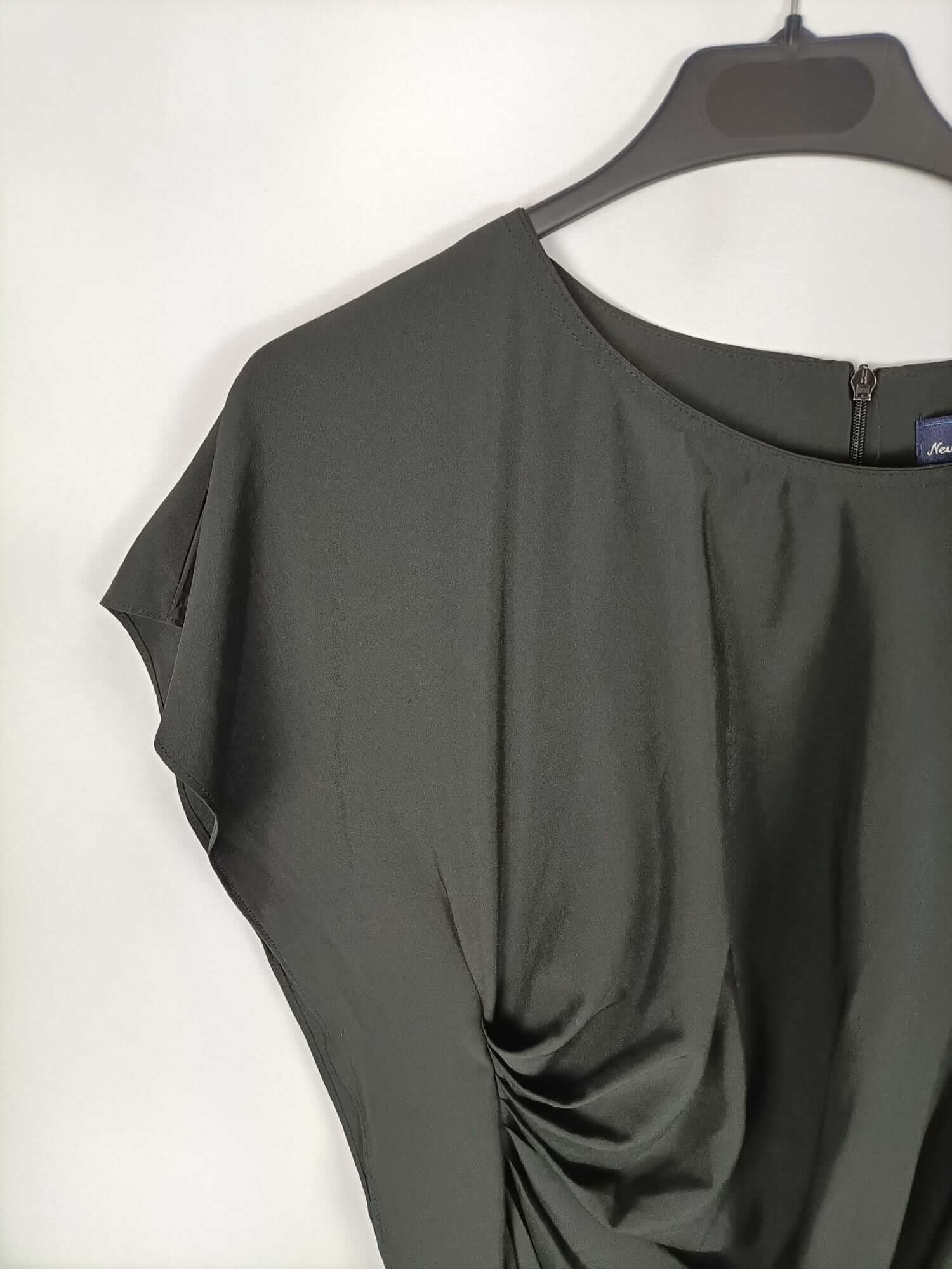New York Laundry. M. Vestido negro de vestir con la mangas asimétricas. Fluido y fino. Fruncido. De sisa a sisa 48 cm largo 86 cm