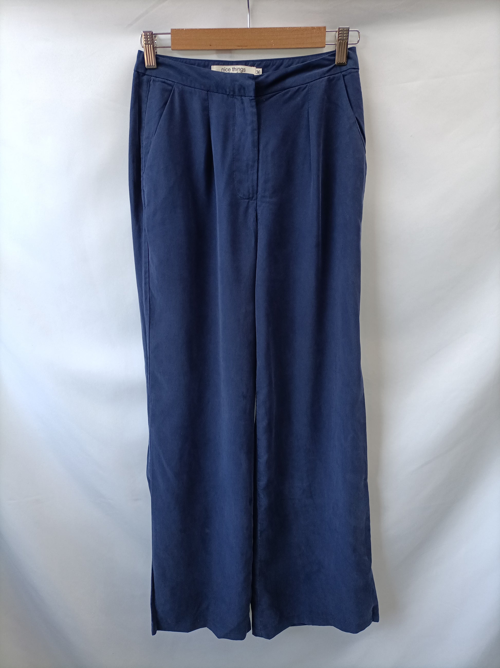 Nice things. Pantalón ancho azul marino. Fluido y ligero. No elástico. Cintura 34 cm largo 109 cm