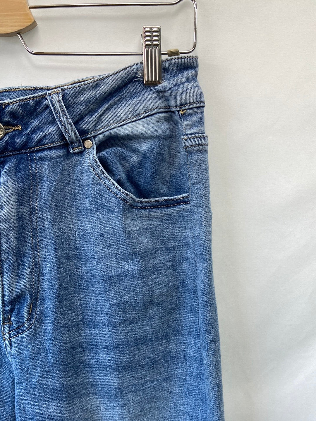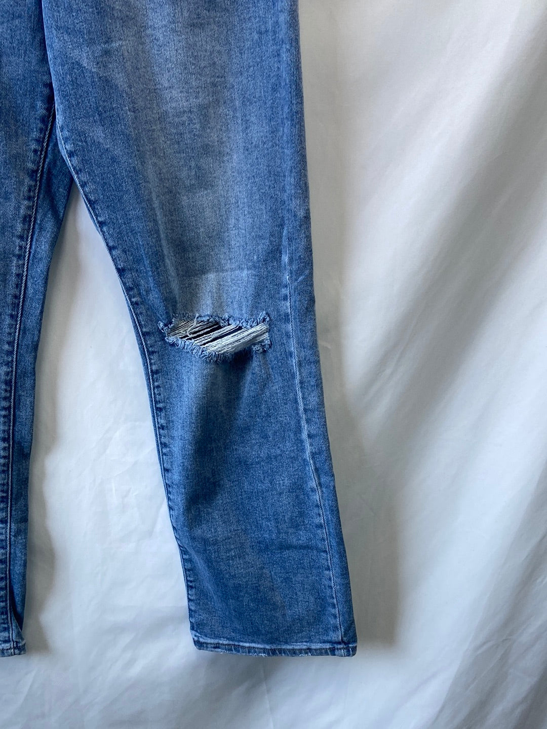 pantalones vaqueros rectos con detalle de rotos. Cintura 40 cm largo 105 cm .