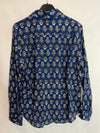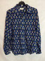 100% algodón. Blusa azul estampada. Tara: le falta un botón