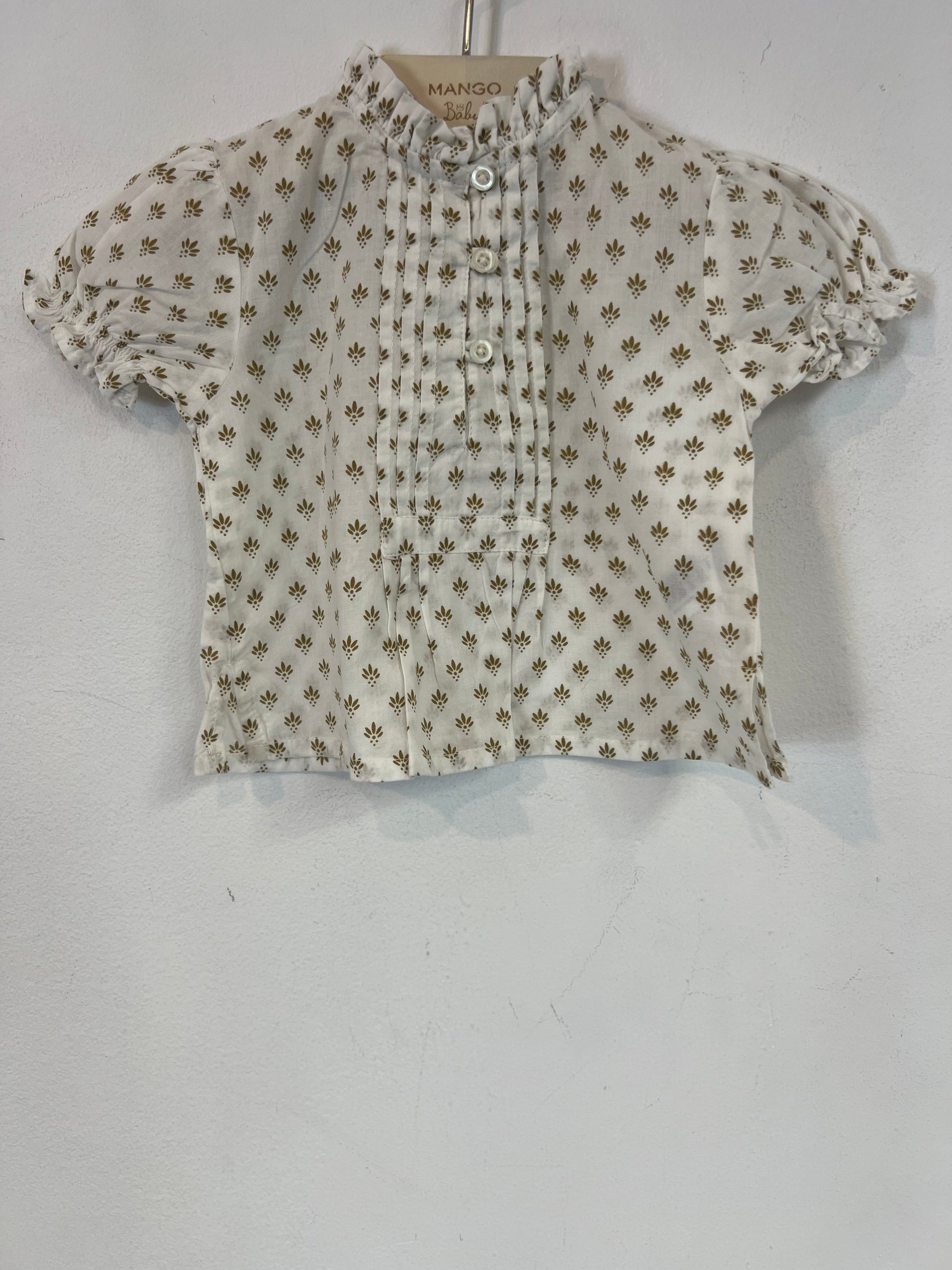 NICOLÍ. Blusa blanca flores verdes T.6-9 meses
