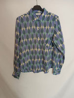 blusa fluida y fina con estampado de gotas en tonos azules y beige. 100%algodón