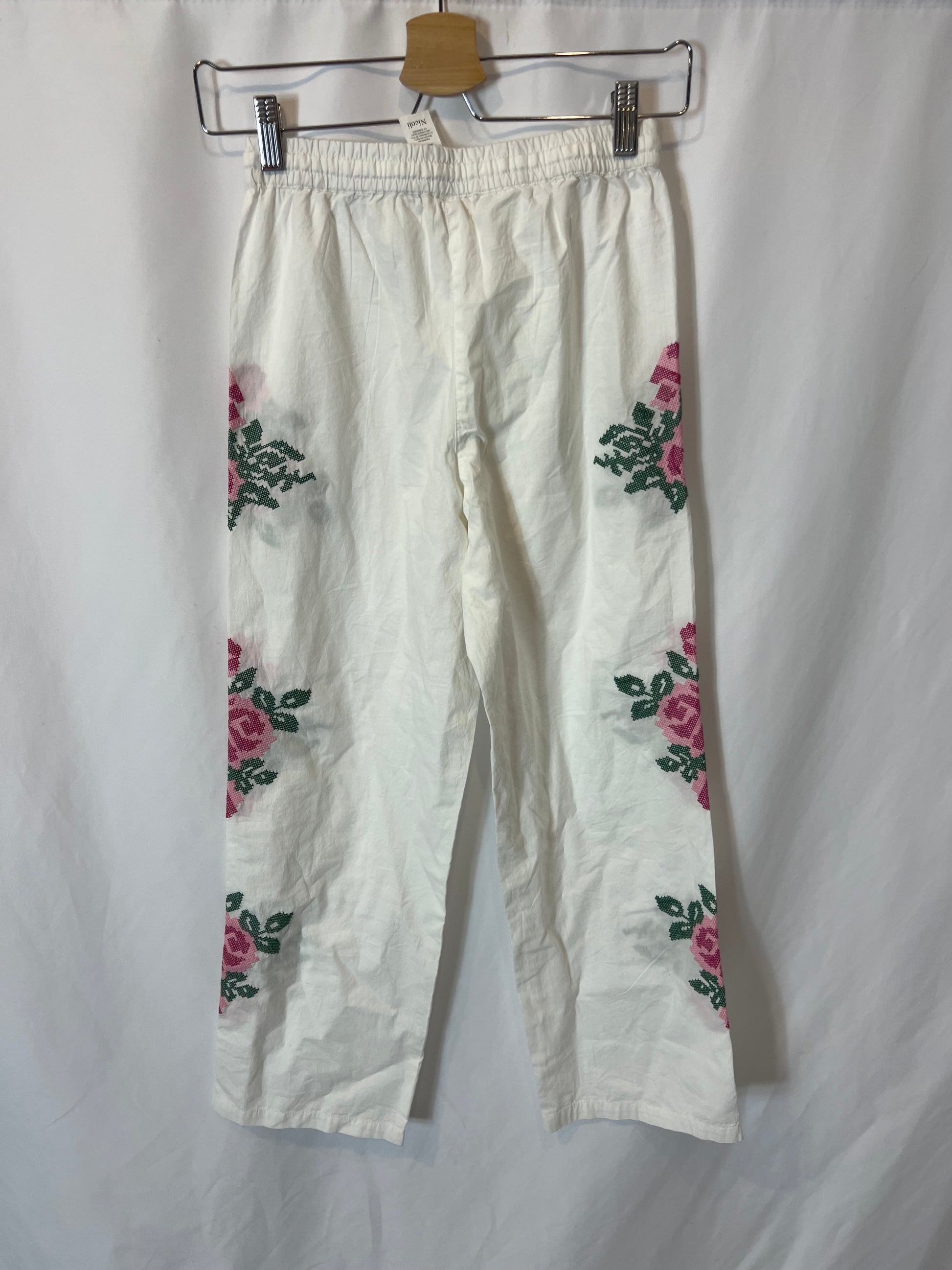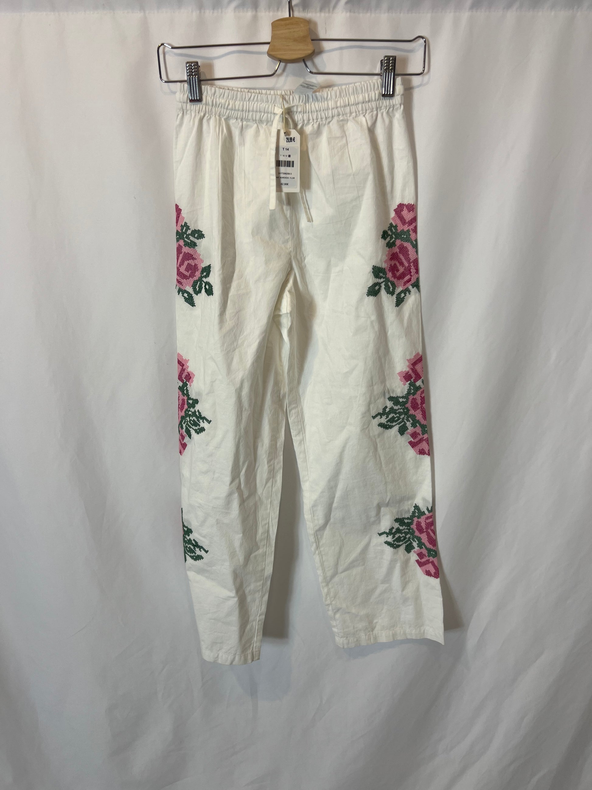 NUEVO CON ETIQUETA. Pantalón blanco bordados cintura elástica