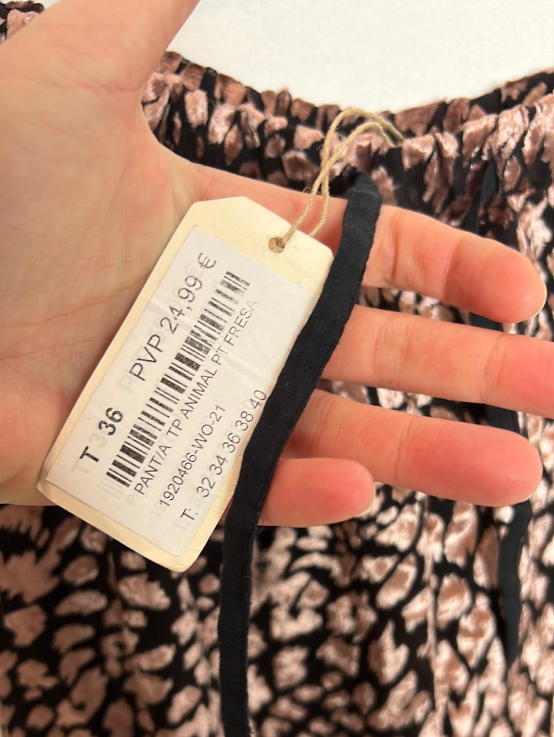 NUEVO CON ETIQUETA. Pantalón fluido de terciopelo estampado animal print. Cibtura 35cm, largo 92cm