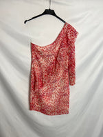 NICOLI. Vestido corto rosa estampado una manga T.S
