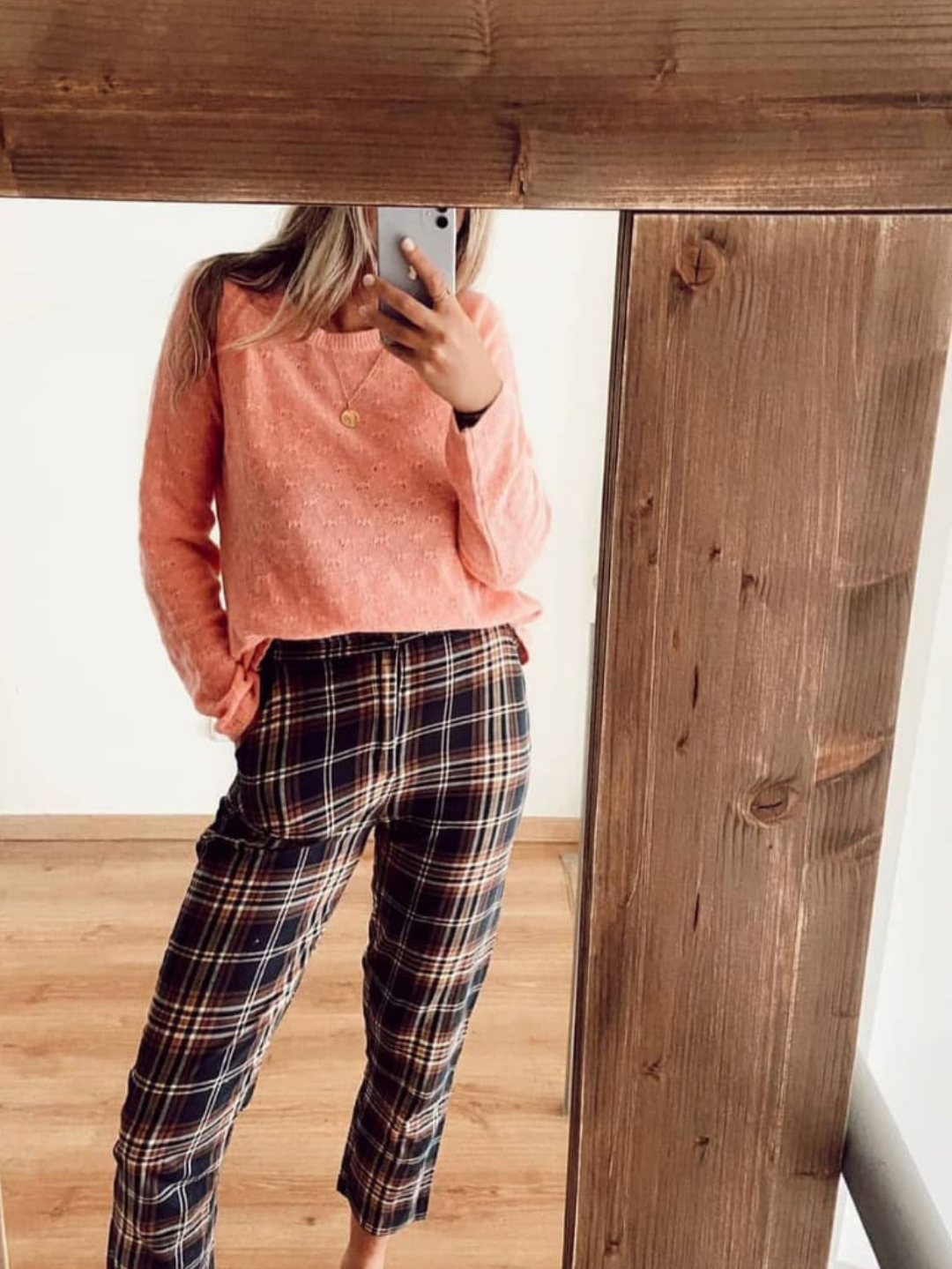 Nicolí. Pantalones cuadros tonos tierra. Cintura 34-36 cm. Largo 100 cm