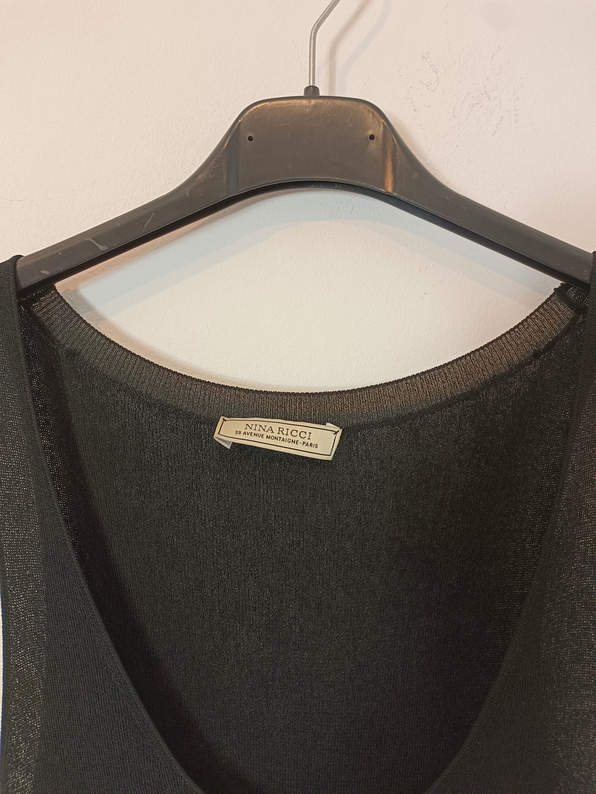 vestido corto negro de seda con volantes de encaje. De sisa a sisa 36 cm largo 86 cm