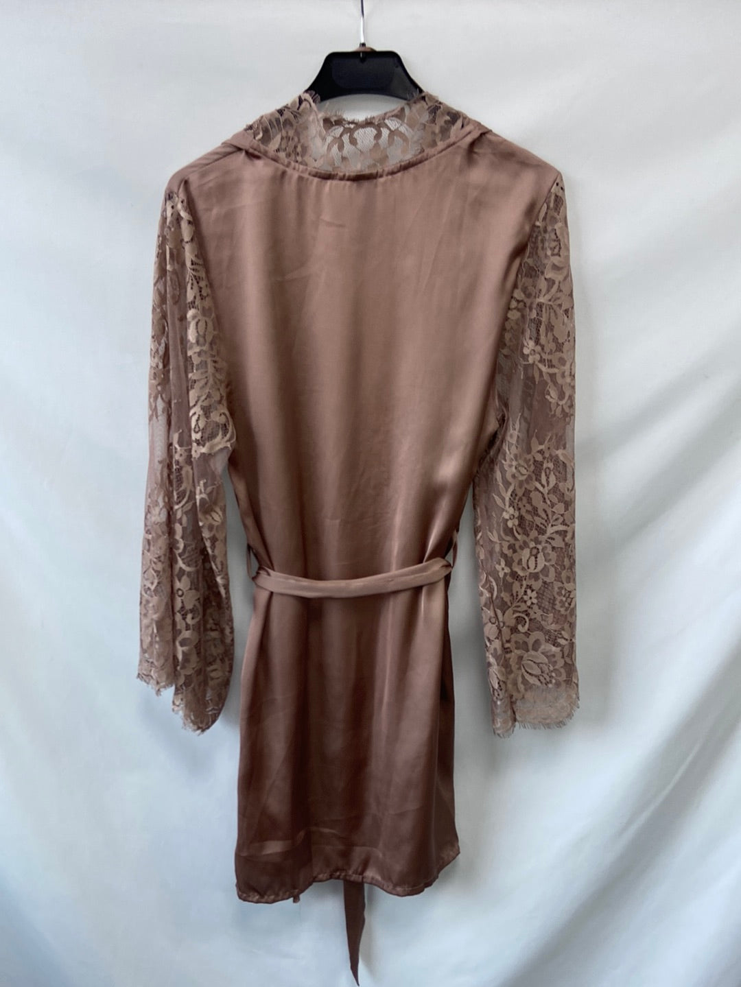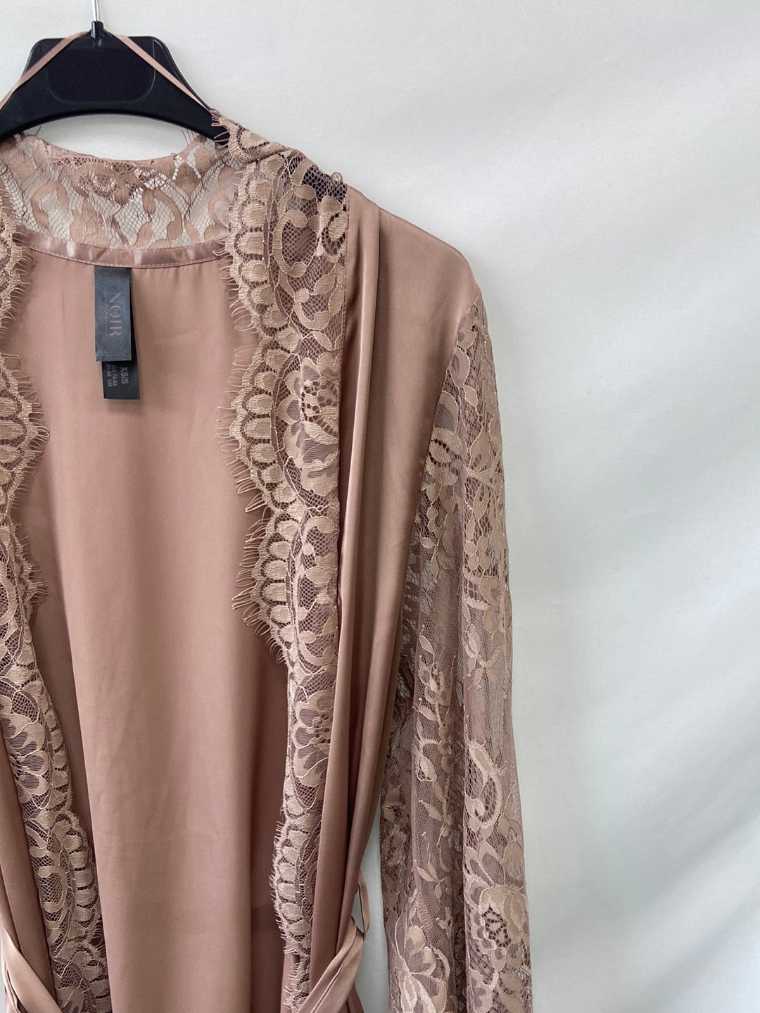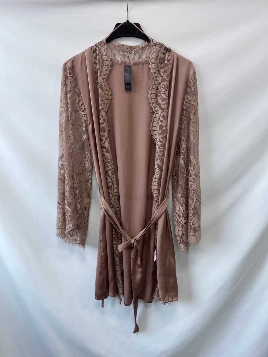 rosa oscuro satinado encaje. 100% poliéster . Largo 87 cm.