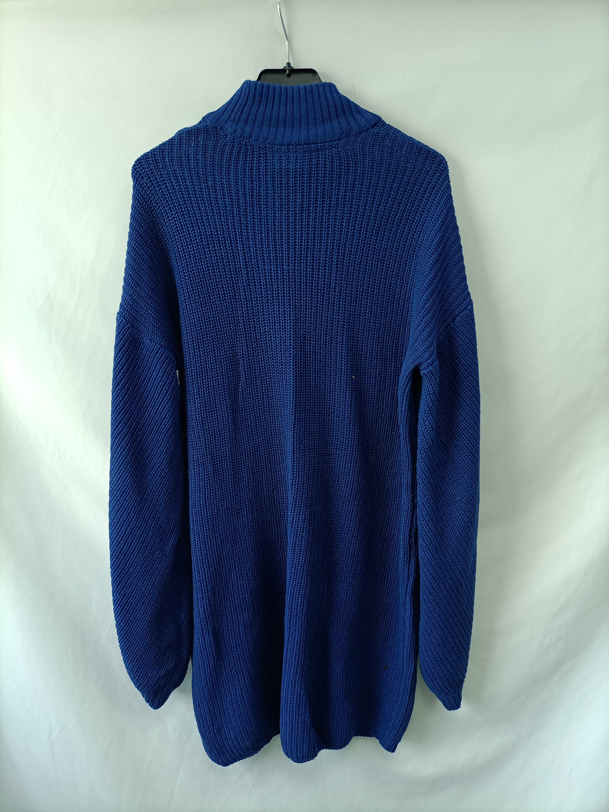 Vestido de punto azul Klein, cuello perkins. Largo 92 cm