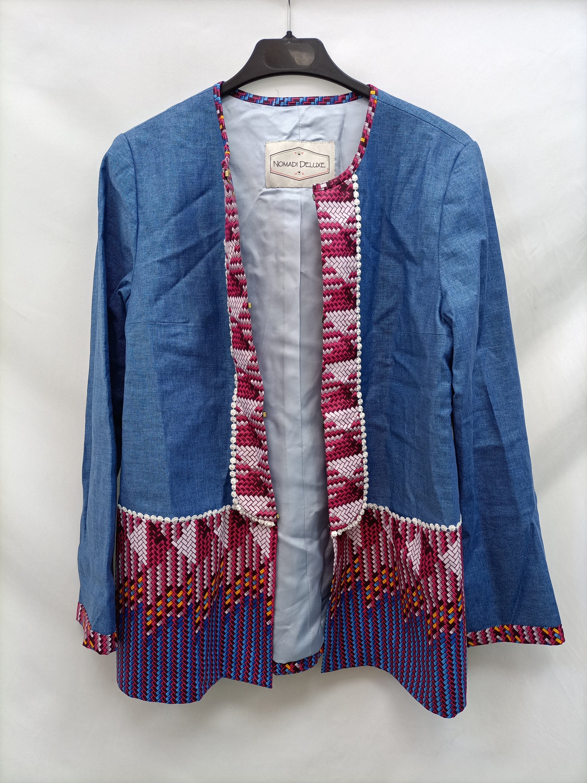 NOMADI DELUXE. Chaqueta azul estampada T.s