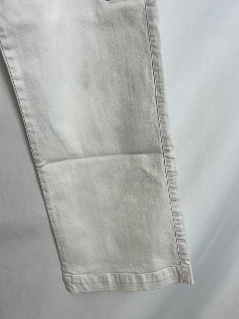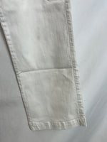 Pantalones blancos denim bolsillos pata ancha. Tejido no elástico. Tara: mancha en la rodilla poco perceptible