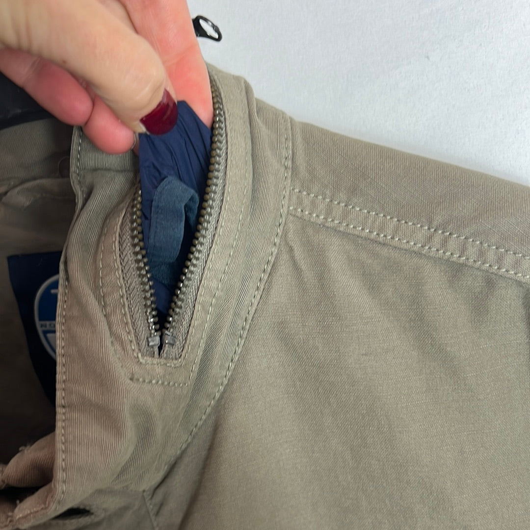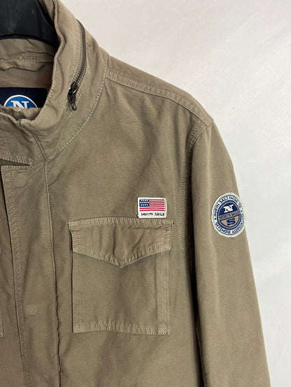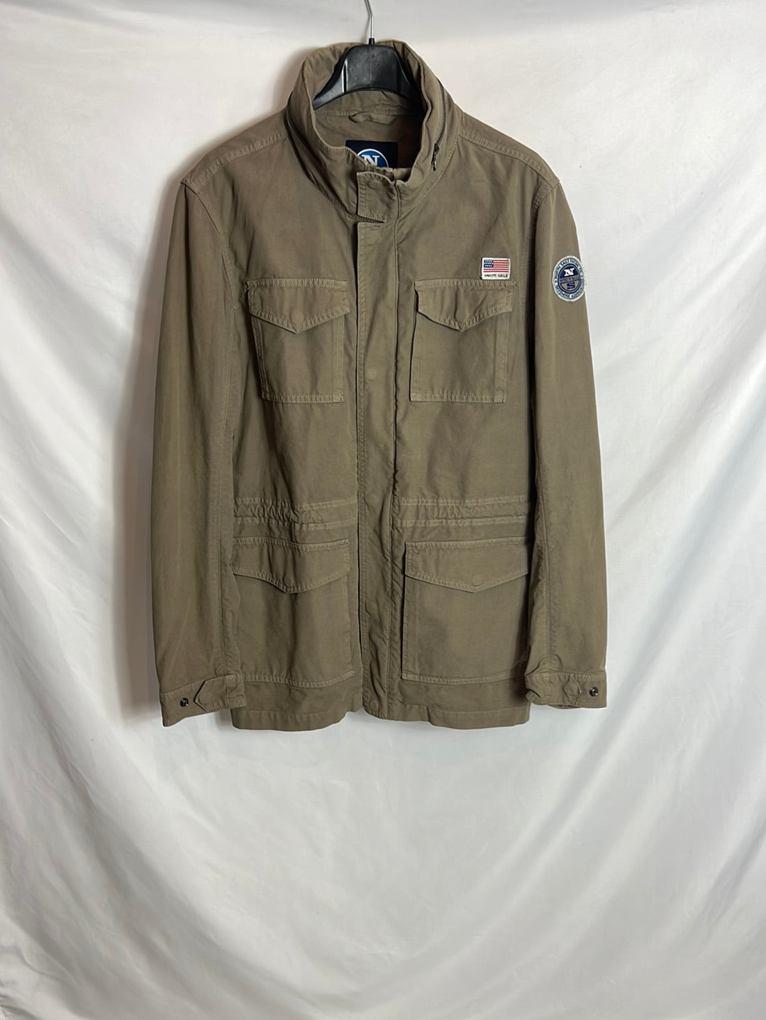 cazadora verde caqui con cremallera. Hombros 44cm, largo cm
