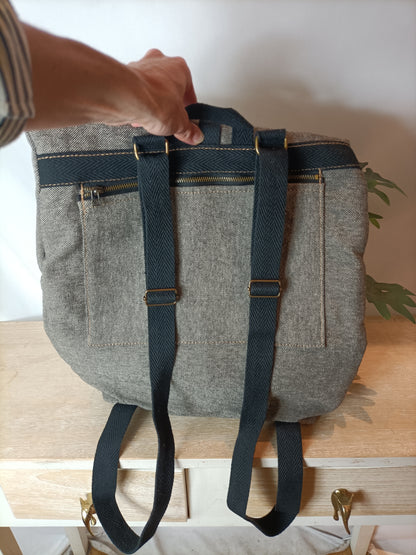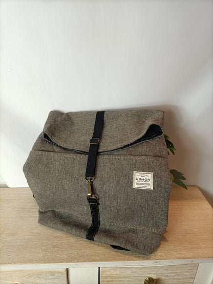 NUEVA SIN USO. Mochila gris jaspeada solapa