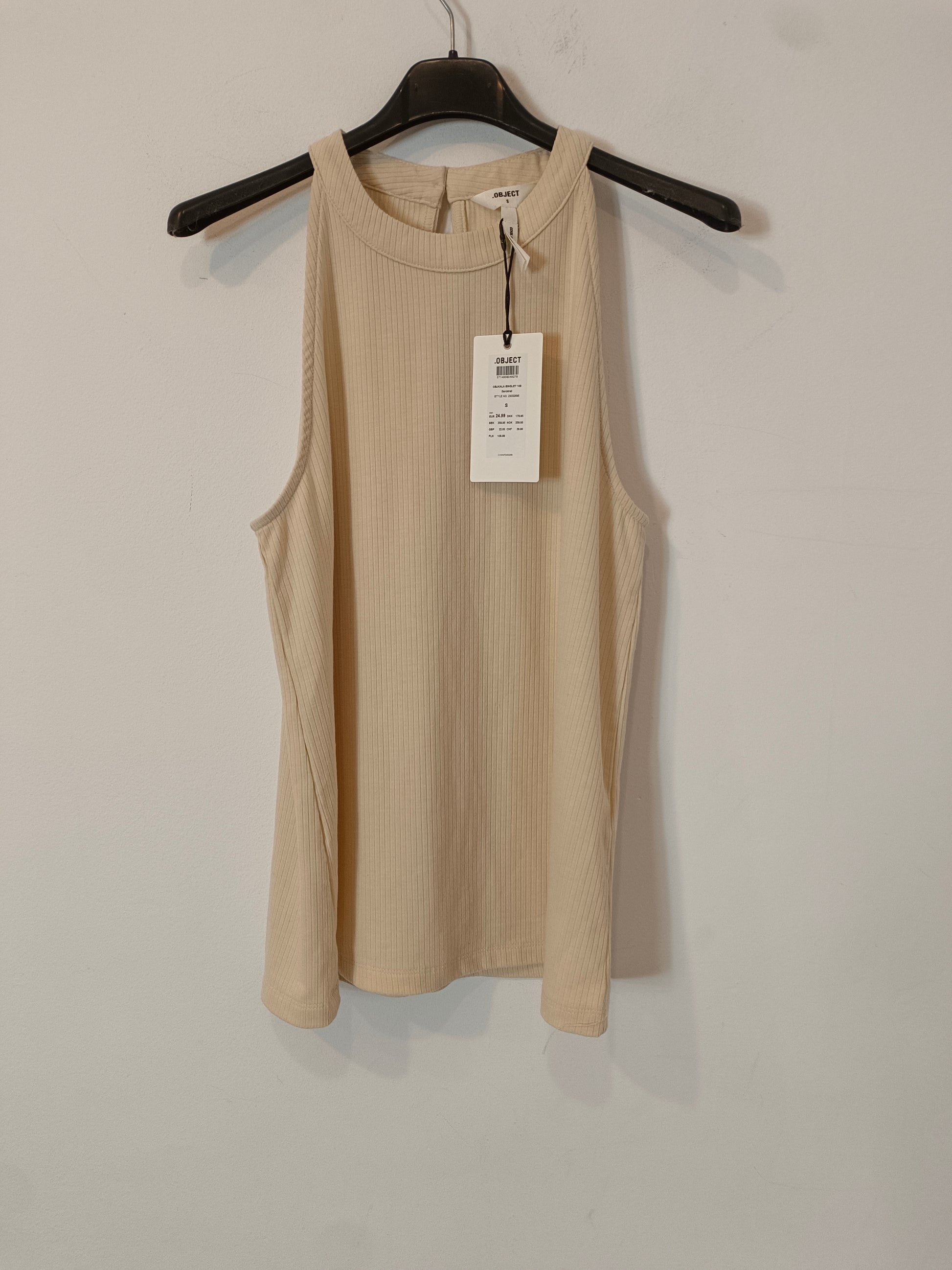 NUEVO CON ETIQUETA. top beige de canalé elástico con el cuello elástico. De sisa a sisa cm, largo cm