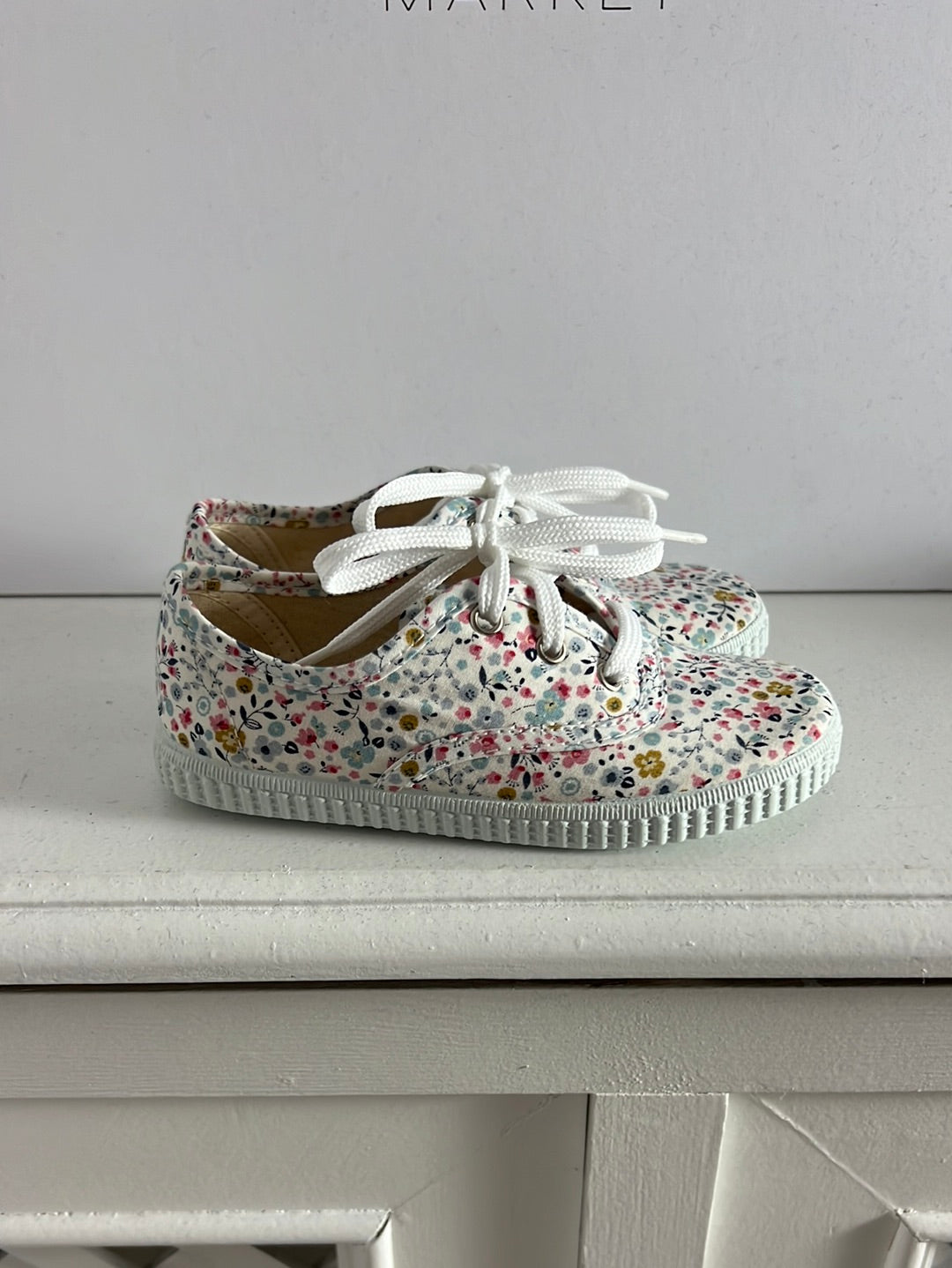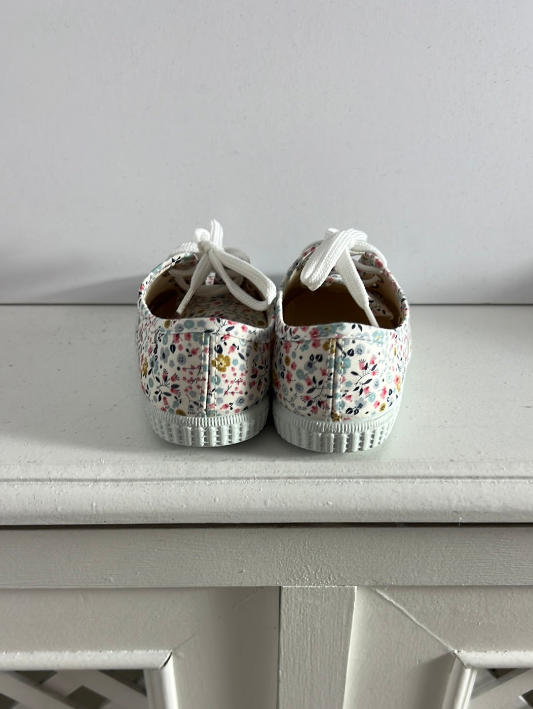 OKAA. Zapatillas lona cordones florecitas. T 25