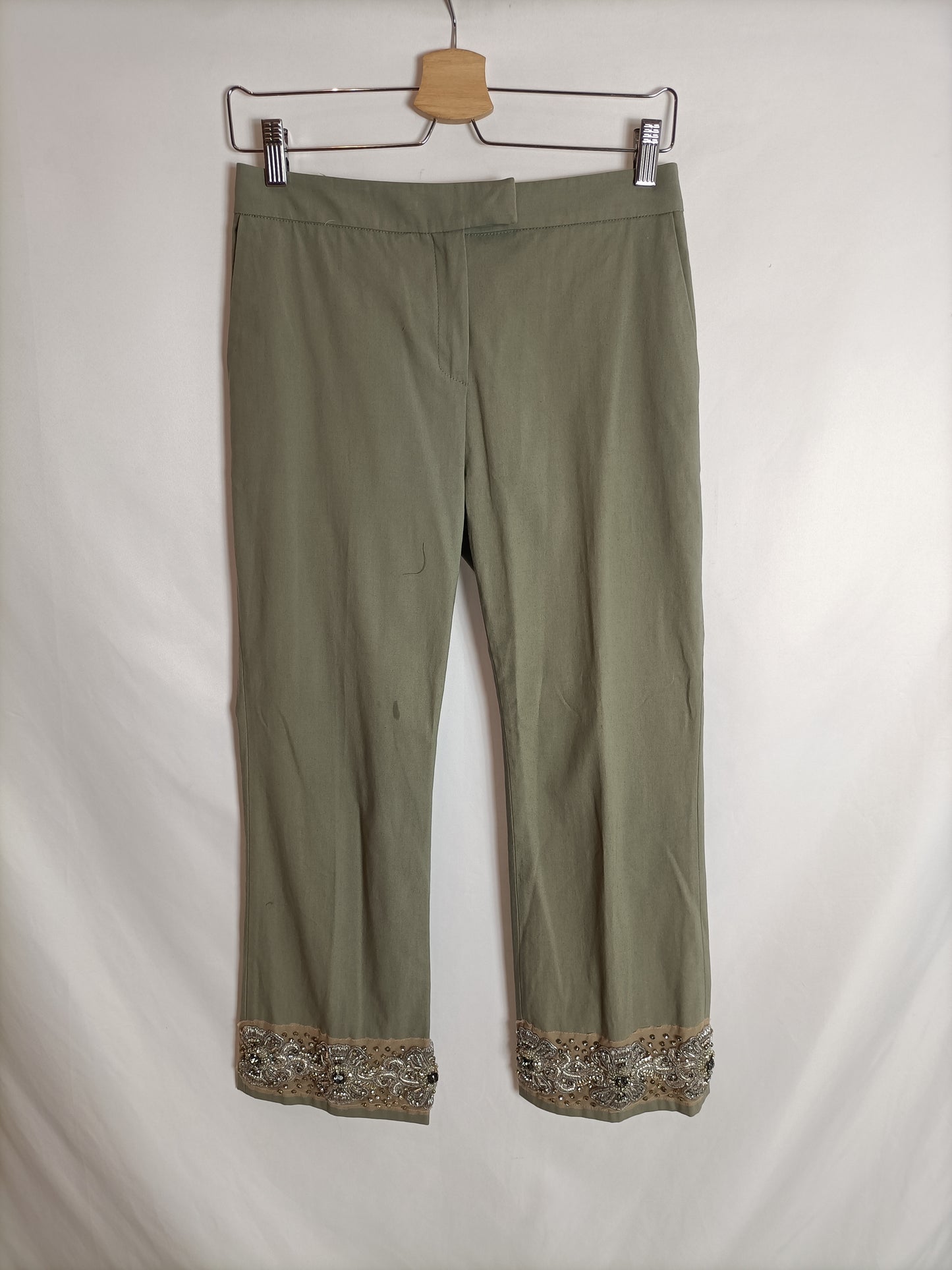ONE. Pantalón verde pedrería T.42(34)