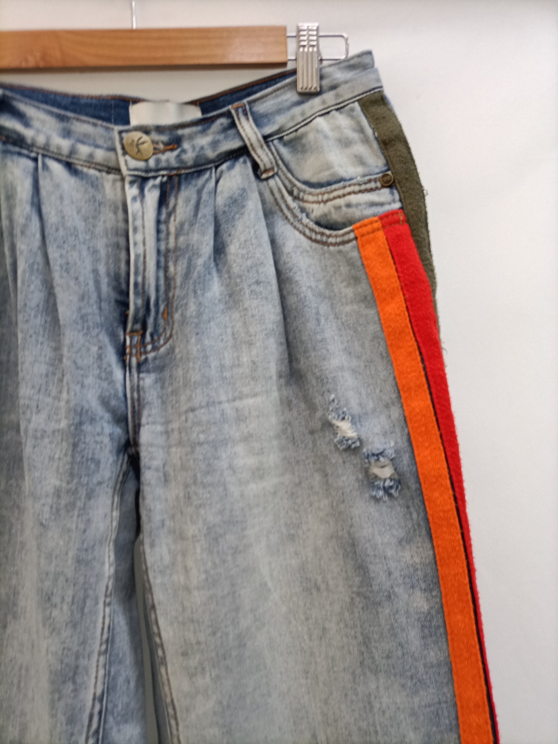 Pantalón vaquero slouchy con raya latera. cintura 36 cm largo 94cm