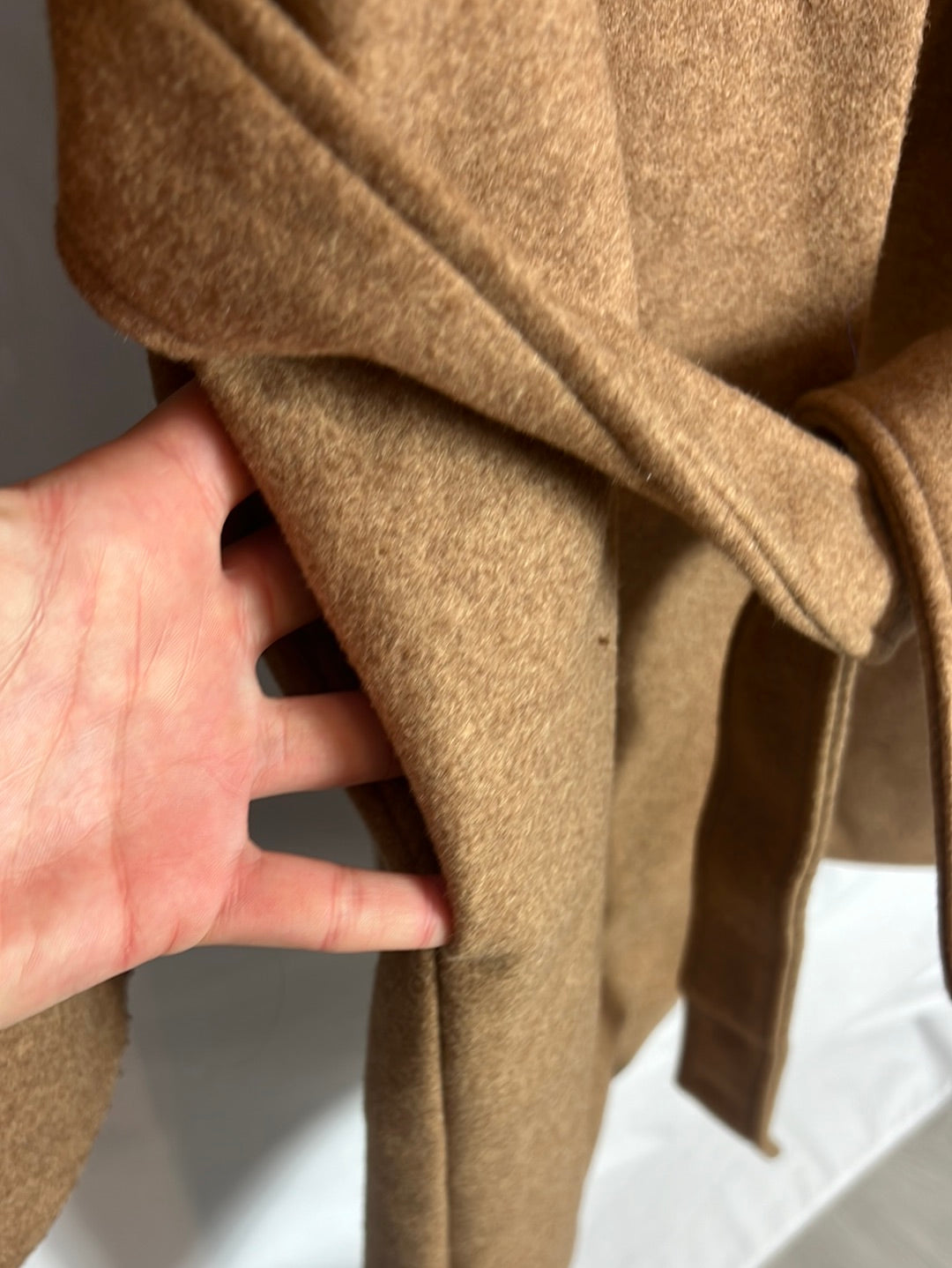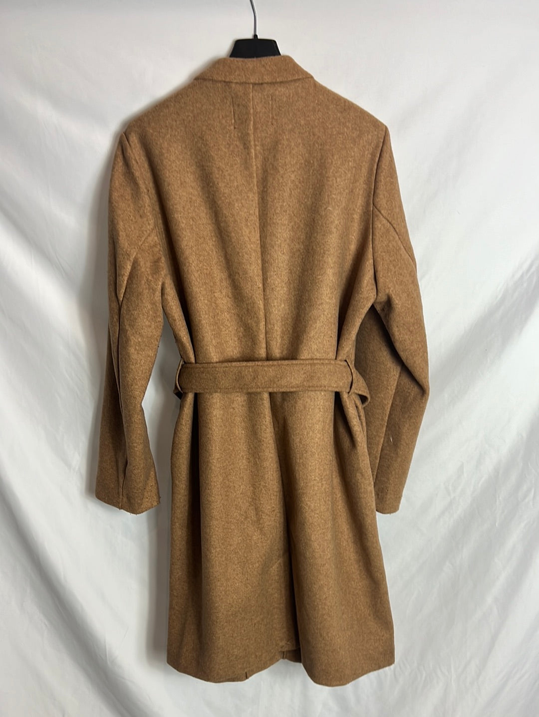 Abrigo paño camel 3/4 con cinturón. Hombros 41ck, de sisa a sisa 54cm, largo 100cm