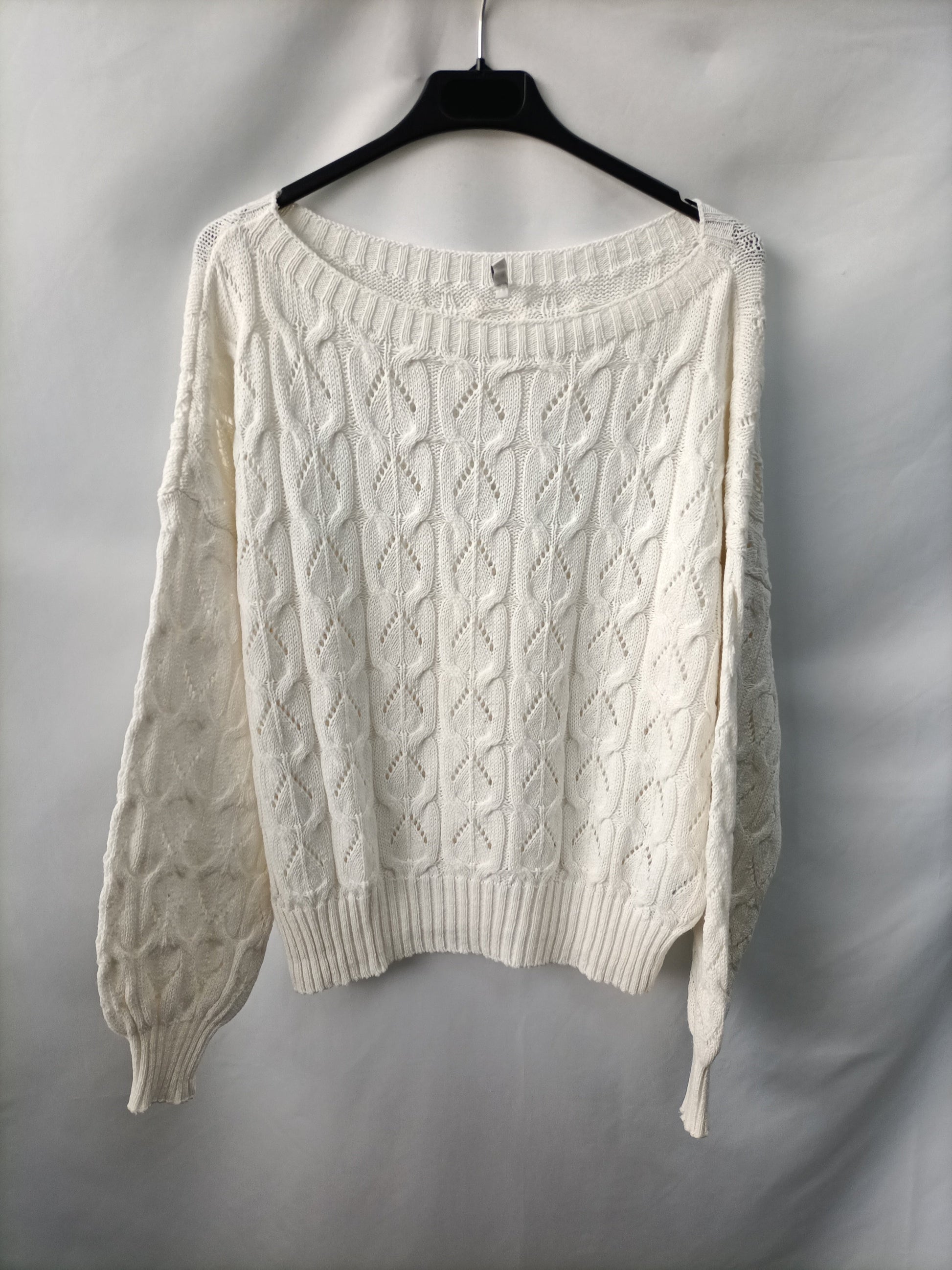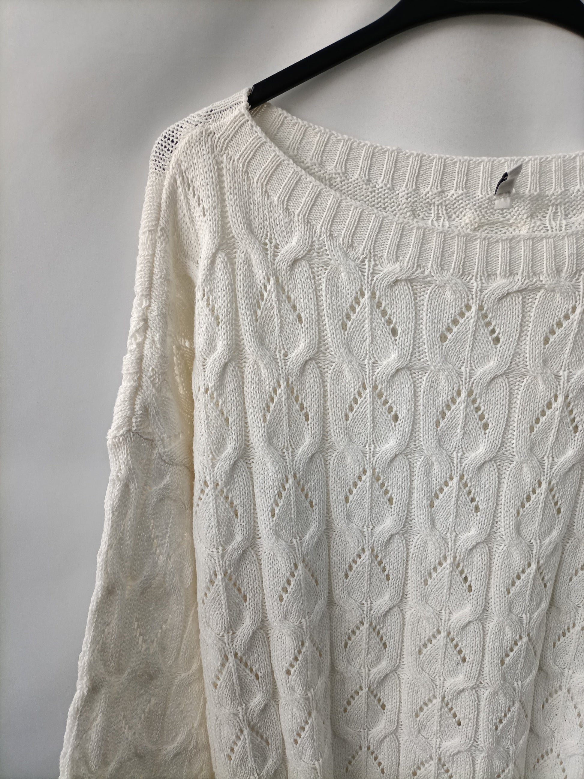 Jersey blanco crudo troquelado. Cuello amplio. Largo 51 cm