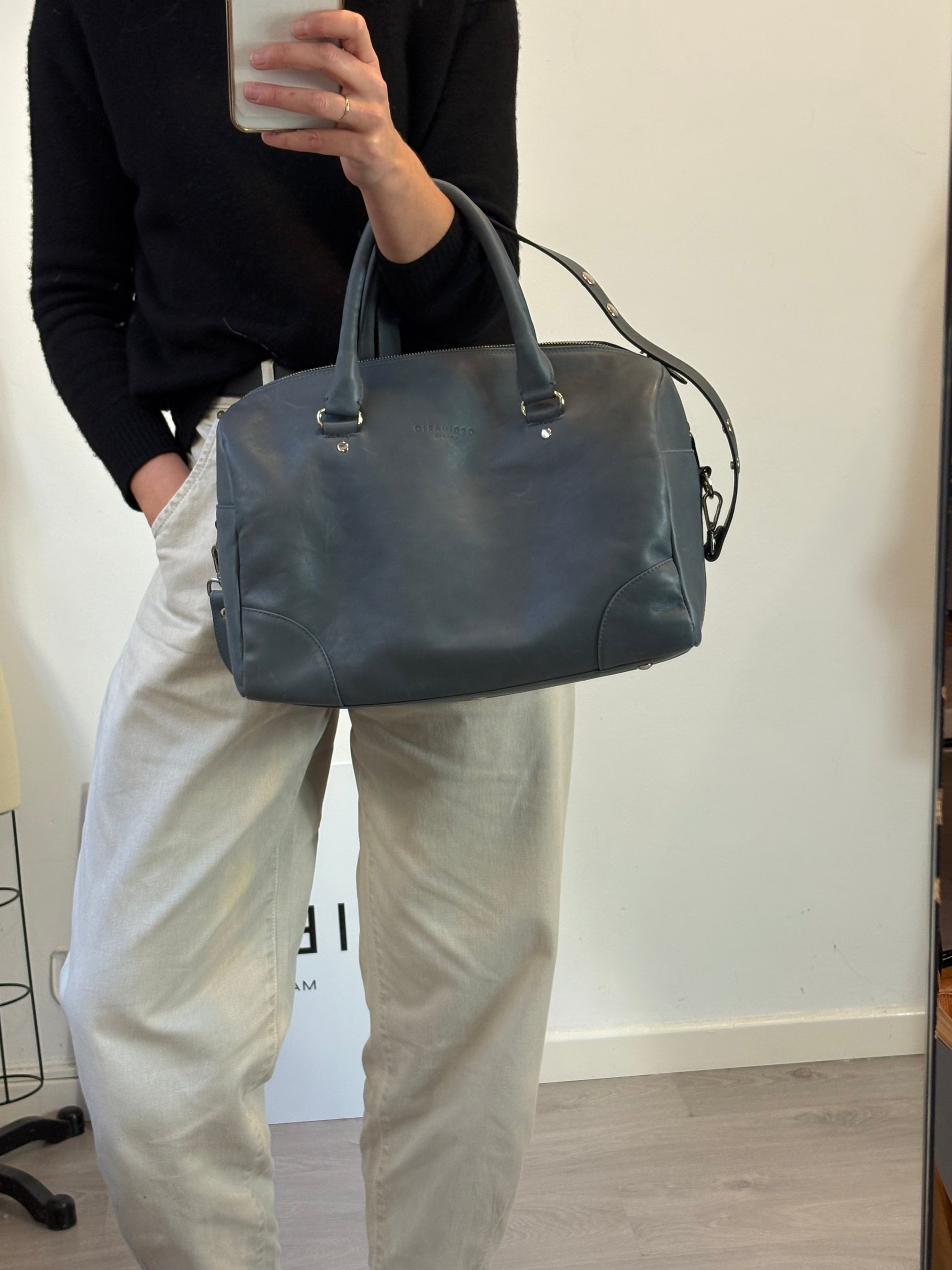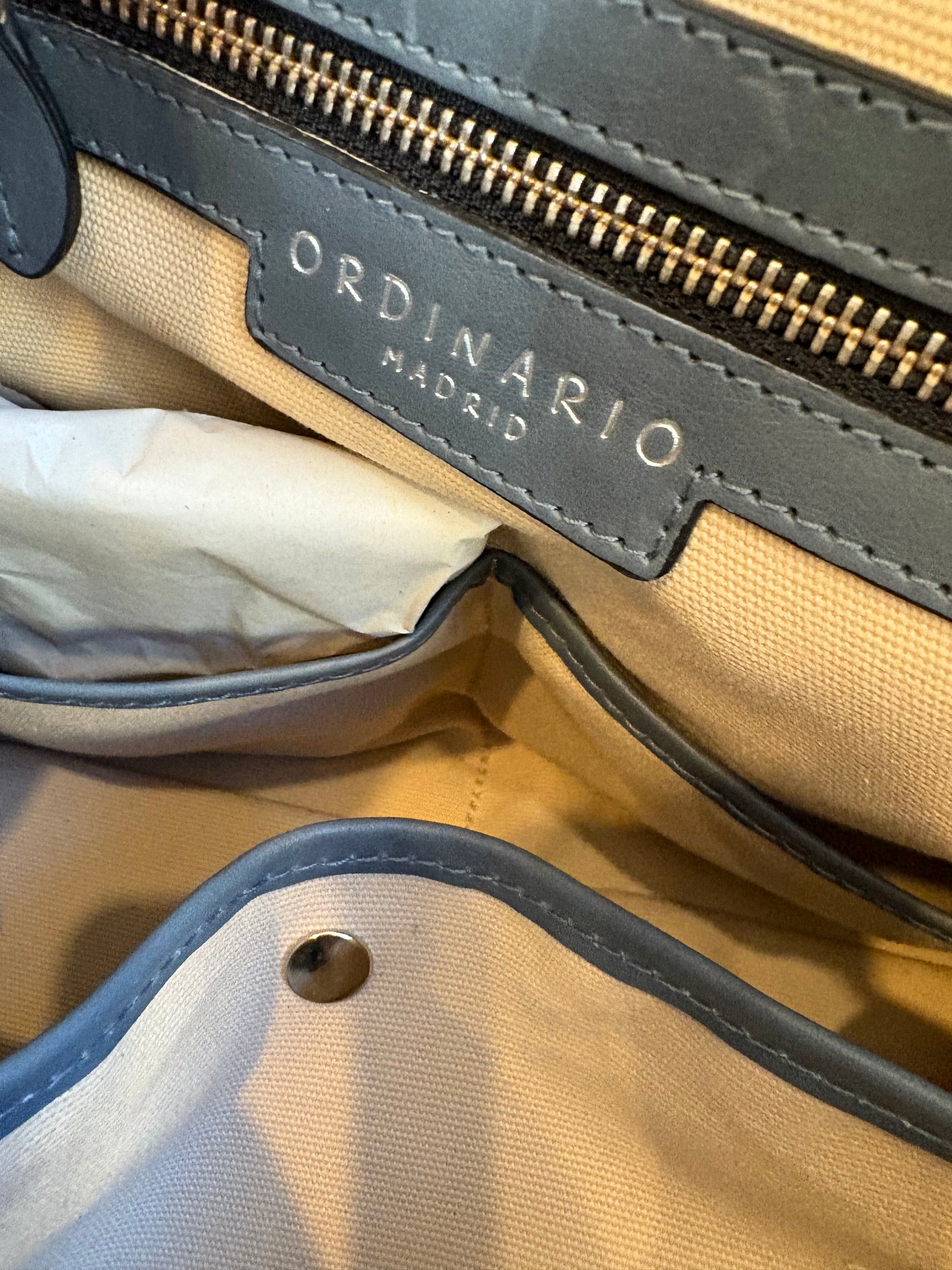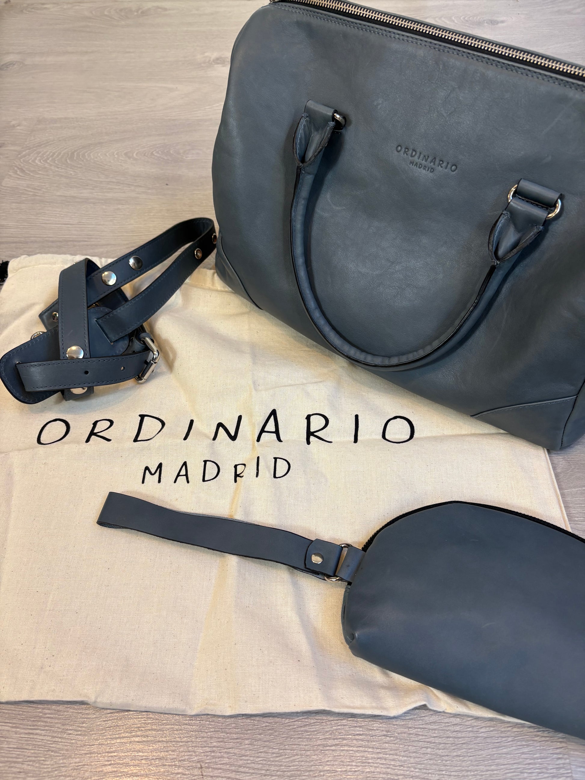 ORDINARIO MADRID. Bolso piel azul doble asa